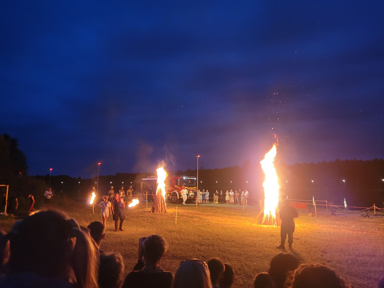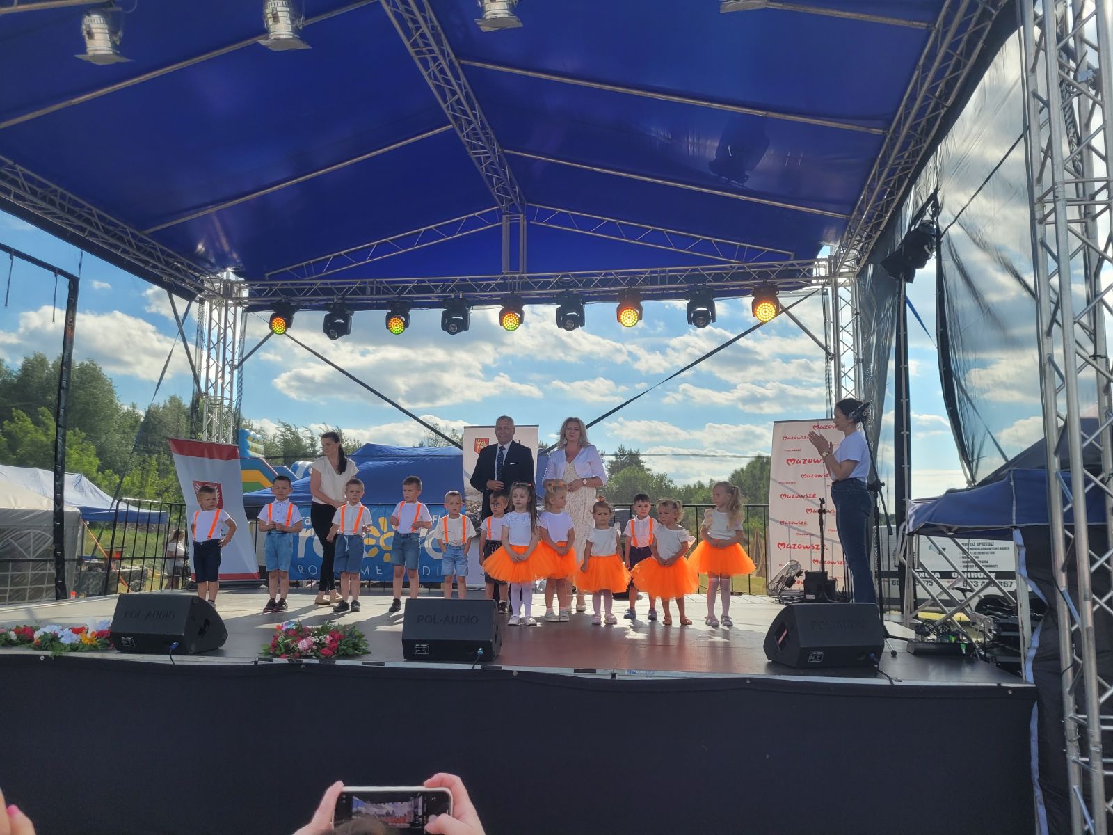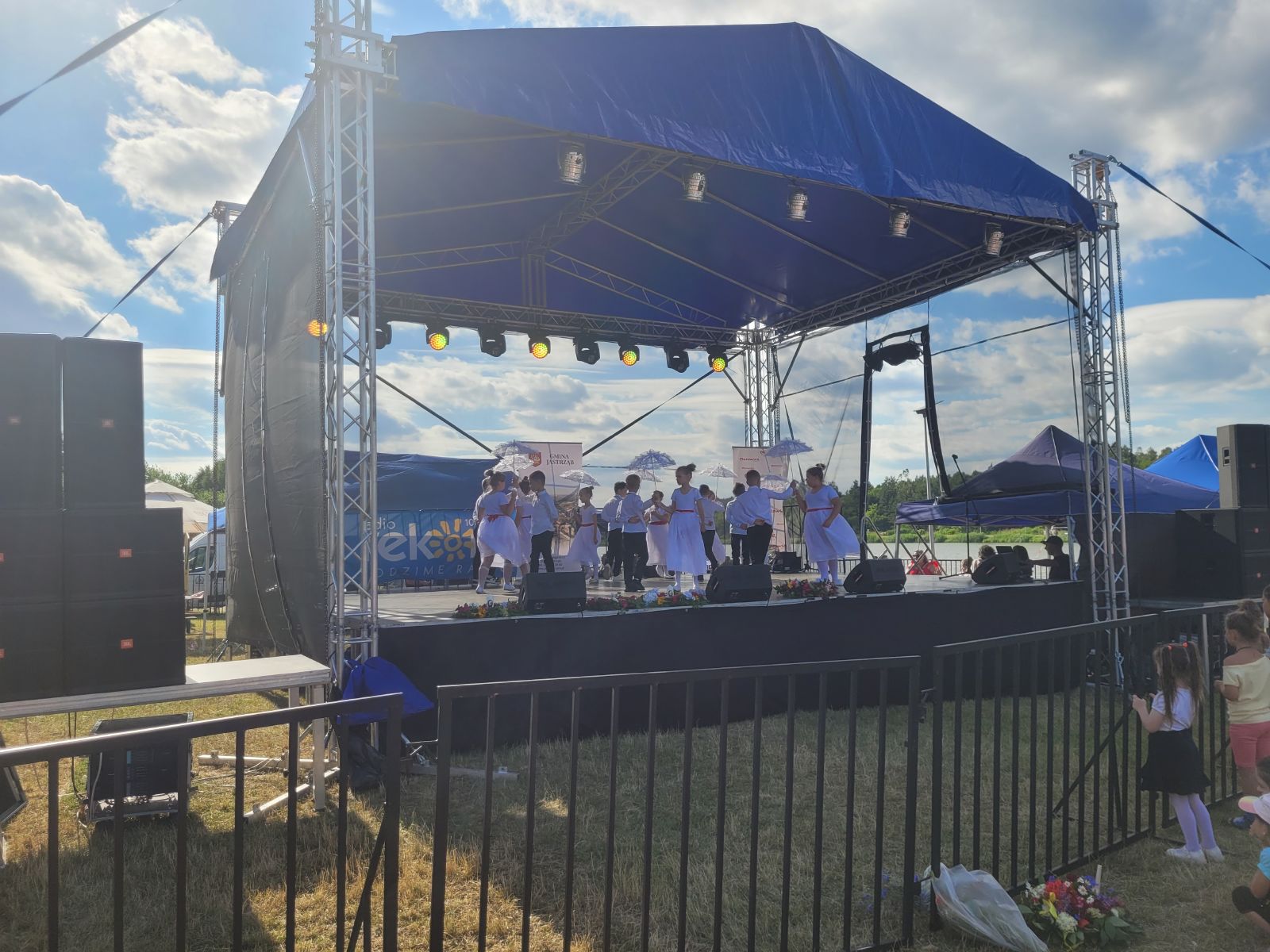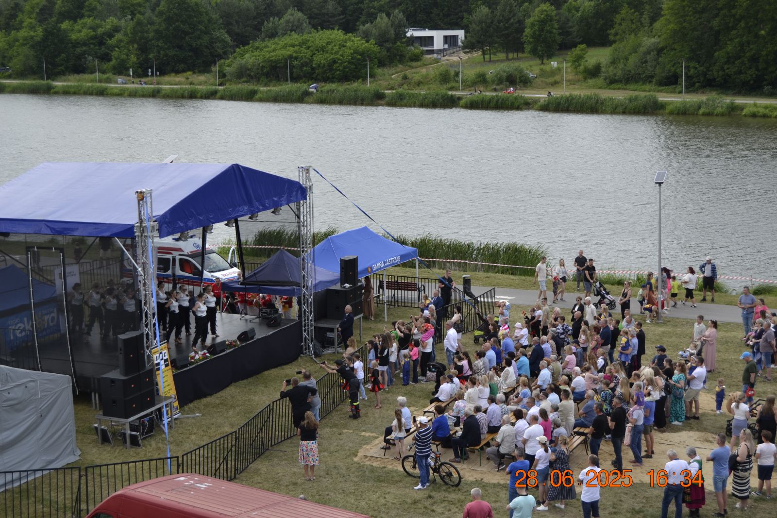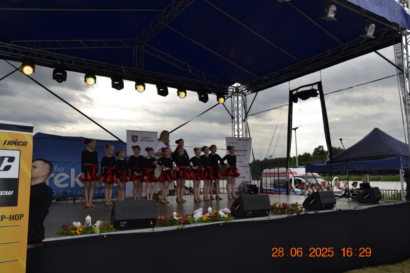 Następnie rozpoczął się blok występów artystycznych przygotowanych przez dzieci i młodzież z lokalnych szkół oraz przedszkola. Publiczność nagrodziła młodych wykonawców gromkimi brawami.Dużą dawkę energii zapewniły występy taneczne lokalnych grup: Fiesta Kids, Bravitos i Jastrzębskich Iskier. Scena należała także do seniorów z grupy teatralnej Młodzi Duchem, którzy z humorem i nostalgią nawiązali do słowiańskich tradycji nocy świętojańskiej.Nie zabrakło również folkloru, na scenie zaprezentowały się zespoły ludowe reprezentujące sołectwa naszej gminy, m.in. Lipieniczanki, Niwanki, Wolanki, Nowoczesne Babcie, Gąsawianki oraz Orłowianki.Jednym z najbardziej symbolicznych momentów wieczoru był obrzęd puszczania wianków na wodę, który przyciągnął tłumy nad brzeg zalewu. Chwilę później odbył się gościnnie występ taneczny grupy Doris Dance Crew z Radomia.Wieczorna część wydarzenia miała charakter koncertowy i widowiskowy. Na scenie pojawił się zespół Swawola, a następnie emocje podgrzał efektowny pokaz teatru ognia w wykonaniu Grupy Sarmata. Kulminacyjnym punktem programu był koncert Kapeli Górale, który zgromadził licznych fanów muzyki i porwał do wspólnego śpiewu i tańca. Świętojańską noc zakończyła zabawa taneczna prowadzona przez DJ-a Miarę, która trwała do późnych godzin nocnych.Na najmłodszych uczestników czekały darmowe atrakcje: dmuchańce, malowanie twarzy, popcorn, wata cukrowa oraz liczne gry i zabawy. Tradycyjnie dużym zainteresowaniem cieszyła się również grochówka przygotowana przez druhów z OSP Nowy Dwór, którzy jednocześnie prowadzili pokaz pierwszej pomocy.Nad bezpieczeństwem uczestników czuwali ratownicy WOPR z Radomia, strażacy z jednostek OSP Jastrząb, Gąsawy, Woli Lipienieckiej i Nowego Dworu. Dla chętnych przygotowano również przejażdżki motorówką po zalewie.Na terenie wydarzenia swoje stoiska edukacyjne i informacyjne przygotowały instytucje publiczne, m.in.: Powiatowa Stacja Sanitarno-Epidemiologiczna w Szydłowcu, Kasa Rolniczego Ubezpieczenia Społecznego, Agencja Restrukturyzacji i Modernizacji Rolnictwa, Mazowiecki Ośrodek Doradztwa Rolniczego, Komenda Powiatowa Policji, która prowadziła działania w ramach akcji „Bezpieczne wakacje”.Nie zabrakło także stoisk kulinarnych z domowymi wypiekami, potrawami regionalnymi i rękodziełem. Wyjątkowe smaki serwowały Koła Gospodyń Wiejskich z: Lipienic, Lipienic Dolnych, Orłowianek, Gąsaw Plebańskich, Kolonii Kuźnii, Nowoczesnych Babć oraz Stowarzyszenie Gąsawianki.Wydarzenie zostało zorganizowane przez Gminę Jastrząb przy współpracy z Samorządem Województwa Mazowieckiego, a patronat honorowy nad Świętojankami objął Marszałek Województwa Mazowieckiego.Dziękujemy wszystkim mieszkańcom oraz przybyłym gościom za obecność, wspólne świętowanie i wyjątkową atmosferę. Do zobaczenia podczas kolejnych wydarzeń organizowanych nad Zalewem w Jastrzębiu!