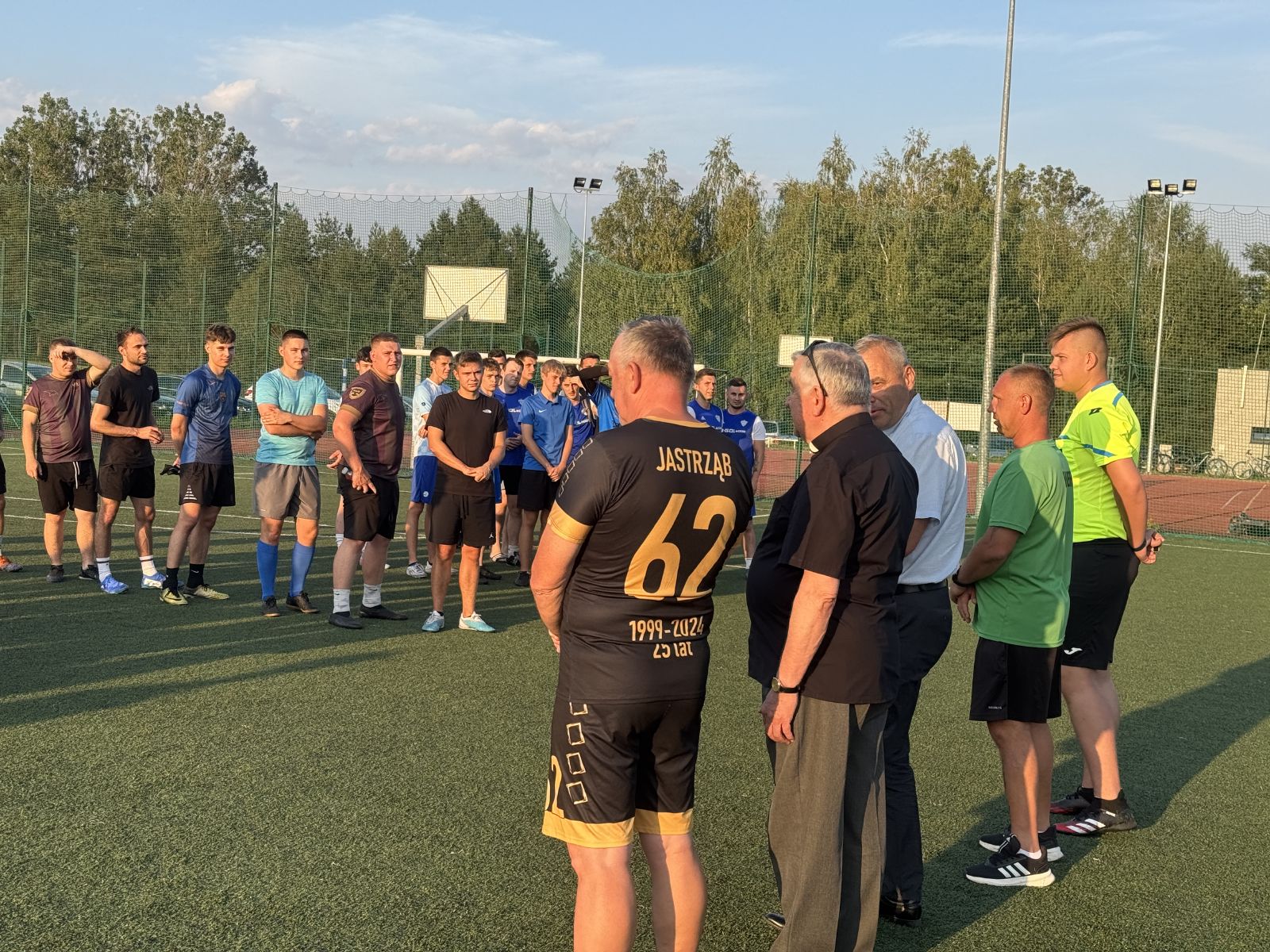 W sobotni wieczór 9 sierpnia br., punktualnie o godz. 19.00 odbył się Nocny Turniej Piłki Nożnej o Puchar Burmistrza Jastrzębia i Proboszcza Parafii Jastrząb, który po raz kolejny udowodnił, że sport łączy ludzi. Zanim jednak zabrzmiał gwizdek sędziego zgromadzonych zawodników i kibiców powitali: Burmistrz Jastrzębia Andrzej Bracha, Przewodniczący Rady Miejskiej Sławomir Bińkowski, Proboszcz Parafii Jastrząb Zbigniew Tuchowski oraz Prezes GKS Jastrząb Jacek Ralcewicz. W krótkich przemówieniach podkreślili wagę sportowej rywalizacji oraz zasady gry fair play. Na zakończenie oficjalnej części Turnieju Burmistrz wraz z Proboszczem symbolicznie wymienili między sobą kilka podań piłką, rozpoczynając tym samym sportowe zmagania.