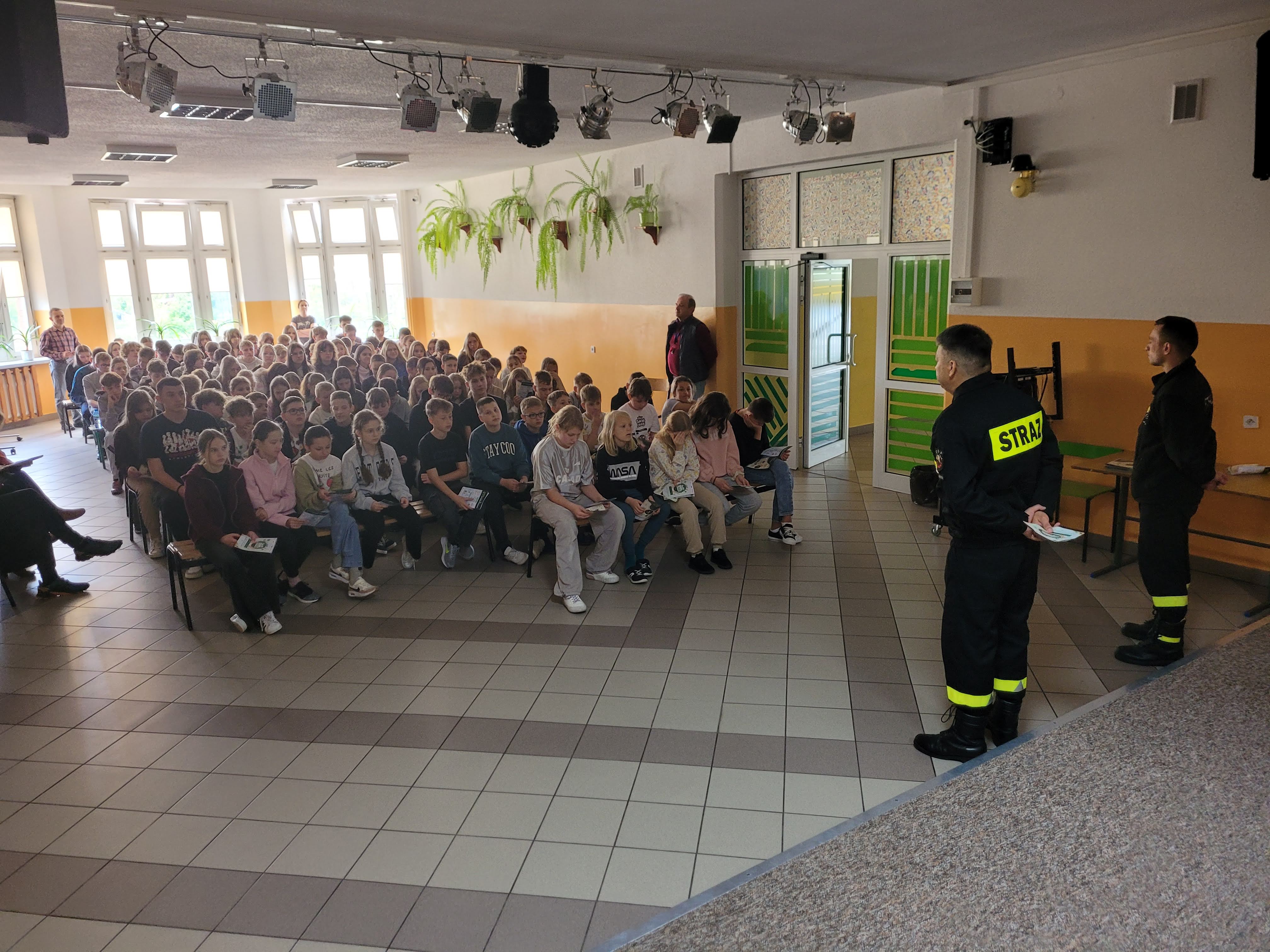 Celem prelekcji było uświadomienie uczniom, w jaki sposób zmiany klimatyczne wpływają na bezpieczeństwo ludzi i środowiska, oraz jaka jest rola służb ratowniczych – w tym straży pożarnej – w sytuacjach kryzysowych wynikających z ekstremalnych zjawisk pogodowych.