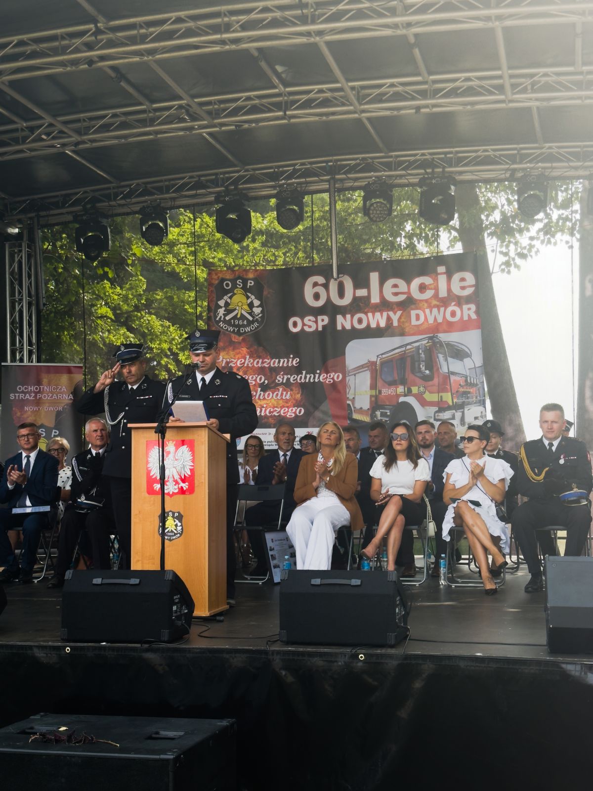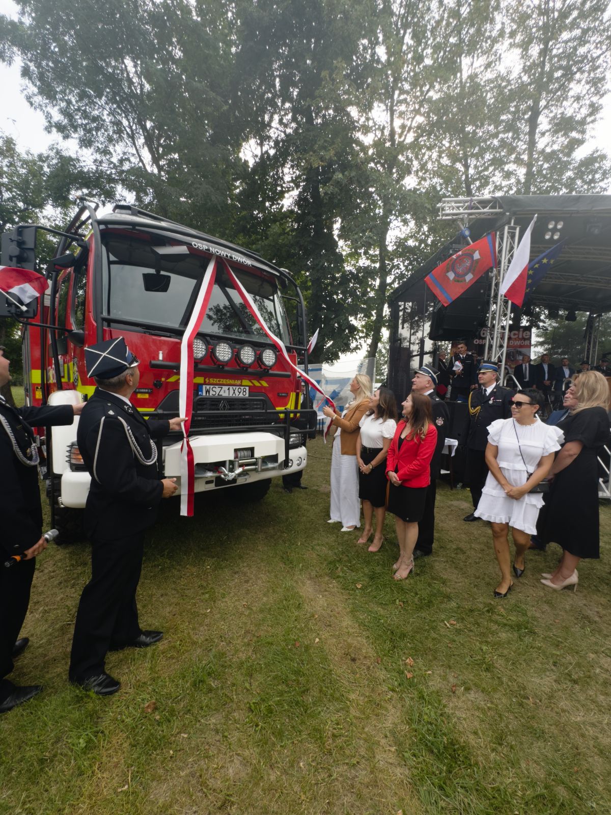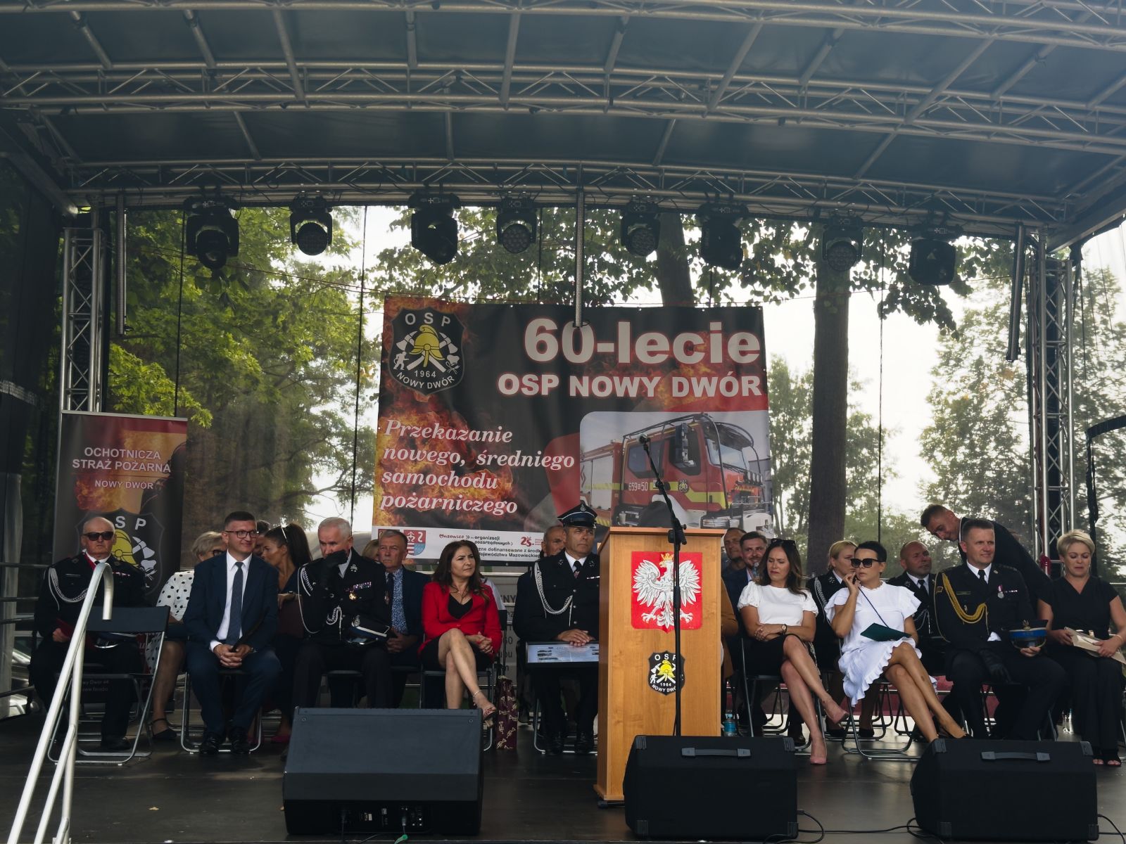 Dnia 31 sierpnia br. na placu przy Ochotniczej Straży Pożarnej w Nowym Dworze odbyła się uroczystość jubileuszu 60 lecia powstania jednostki OSP Nowy Dwór oraz przekazanie i poświęcenie nowego średniego samochodu ratowniczo-gaśniczego jak również odsłonięcie tablicy pamiątkowej. W wydarzeniu udział wzięli m.in.: Agnieszka Górska Poseł na Sejm RP, Edyta Wietrak oraz Magdalena Nowacka Radne Sejmiku Województwa Mazowieckiego, Anita Gołosz Wicestarosta Powiatu w Szydłowcu, Kamil Minda Przewodniczący Rady Powiatu w Szydłowcu, Zbigniew Gołąbek Członek Prezydium Zarządu Głównego Związków Ochotniczych Straży Pożarnych i Wiceprezes Zarządu Oddziału Wojewódzkiego Związku Ochotniczych Straży Pożarnych RP Województwa Mazowieckiego, Paweł Sokół Komendant Powiatowy Państwowej Straży Pożarnej w Szydłowcu, Aleksy Sasin Prezes Zarządu Oddziału Powiatowego Ochotniczej Straży Pożarnej RP, Krzysztof Adamczyk Wiceprezes Zarządu Oddziału Powiatowego Państwowej Straży Pożarnej RP, Dariusz Kowalczyk Przedstawiciel Mazowieckiej Jednostki Wdrażania Projektów Unijnych, Katarzyna Dujka Dyrektor Powiatowej Stacji Sanitarno – Epidemiologicznej w Szydłowcu, Andrzej Bracha Burmistrz Jastrzębia, Sławomir Bińkowski Przewodniczący Rady Miejskiej w Jastrzębiu wraz z Radnymi, Agnieszka Dąbrowska Sekretarz Gminy, Dorota Sykulska Kierownik Referatu ds. Promocji, Kultury i Sportu, Jan Gula Prezes LGD,, Razem na Piaskowcu”, Beata Przytuła-Bińkowska Dyrektor PSP w Jastrzębiu, Ewa Figarska Dyrektor PSP w Nowym Dworze, Anna Kupidura Komendant Gminny OSP Jastrząb, Waldemar Figarski Prezes Ochotniczej Straży Pożarnej w Nowym Dworze, Druhowie oraz Druhny z jednostek OSP gminy Jastrząb, Sołtysi Gminy Jastrząb, KGW Lipienice oraz mieszkańcy Nowego Dworu.