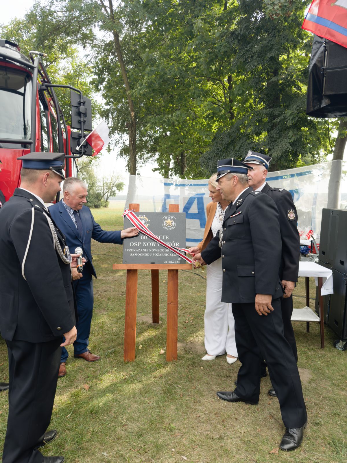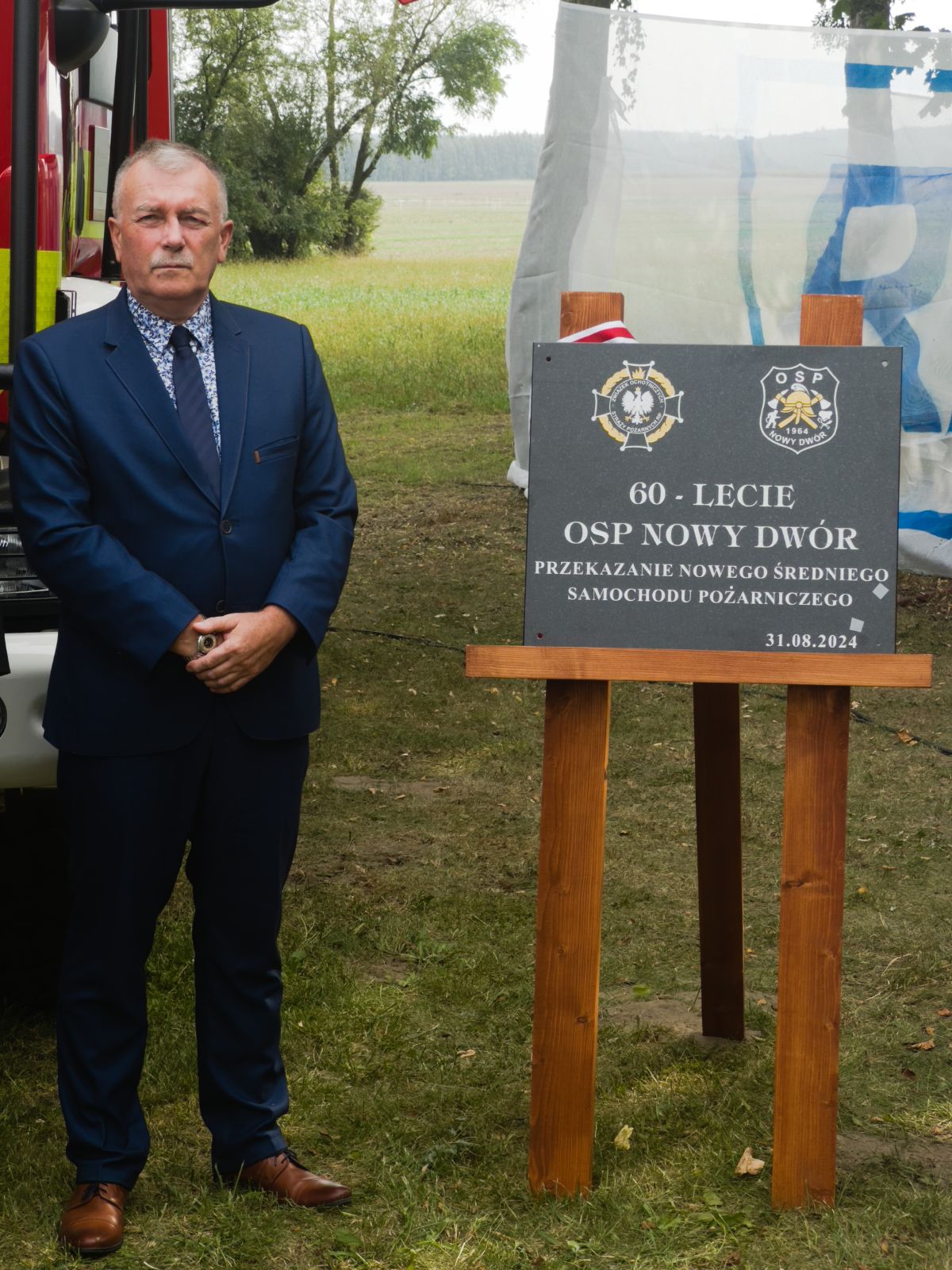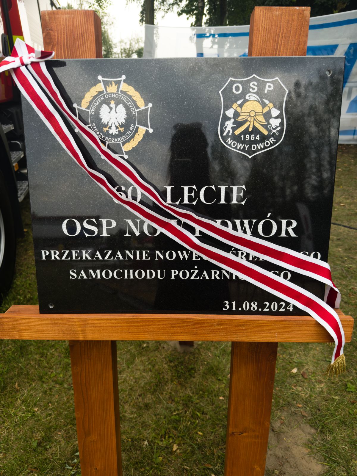Dnia 31 sierpnia br. na placu przy Ochotniczej Straży Pożarnej w Nowym Dworze odbyła się uroczystość jubileuszu 60 lecia powstania jednostki OSP Nowy Dwór oraz przekazanie i poświęcenie nowego średniego samochodu ratowniczo-gaśniczego jak również odsłonięcie tablicy pamiątkowej. W wydarzeniu udział wzięli m.in.: Agnieszka Górska Poseł na Sejm RP, Edyta Wietrak oraz Magdalena Nowacka Radne Sejmiku Województwa Mazowieckiego, Anita Gołosz Wicestarosta Powiatu w Szydłowcu, Kamil Minda Przewodniczący Rady Powiatu w Szydłowcu, Zbigniew Gołąbek Członek Prezydium Zarządu Głównego Związków Ochotniczych Straży Pożarnych i Wiceprezes Zarządu Oddziału Wojewódzkiego Związku Ochotniczych Straży Pożarnych RP Województwa Mazowieckiego, Paweł Sokół Komendant Powiatowy Państwowej Straży Pożarnej w Szydłowcu, Aleksy Sasin Prezes Zarządu Oddziału Powiatowego Ochotniczej Straży Pożarnej RP, Krzysztof Adamczyk Wiceprezes Zarządu Oddziału Powiatowego Państwowej Straży Pożarnej RP, Dariusz Kowalczyk Przedstawiciel Mazowieckiej Jednostki Wdrażania Projektów Unijnych, Katarzyna Dujka Dyrektor Powiatowej Stacji Sanitarno – Epidemiologicznej w Szydłowcu, Andrzej Bracha Burmistrz Jastrzębia, Sławomir Bińkowski Przewodniczący Rady Miejskiej w Jastrzębiu wraz z Radnymi, Agnieszka Dąbrowska Sekretarz Gminy, Dorota Sykulska Kierownik Referatu ds. Promocji, Kultury i Sportu, Jan Gula Prezes LGD,, Razem na Piaskowcu”, Beata Przytuła-Bińkowska Dyrektor PSP w Jastrzębiu, Ewa Figarska Dyrektor PSP w Nowym Dworze, Anna Kupidura Komendant Gminny OSP Jastrząb, Waldemar Figarski Prezes Ochotniczej Straży Pożarnej w Nowym Dworze, Druhowie oraz Druhny z jednostek OSP gminy Jastrząb, Sołtysi Gminy Jastrząb, KGW Lipienice oraz mieszkańcy Nowego Dworu.