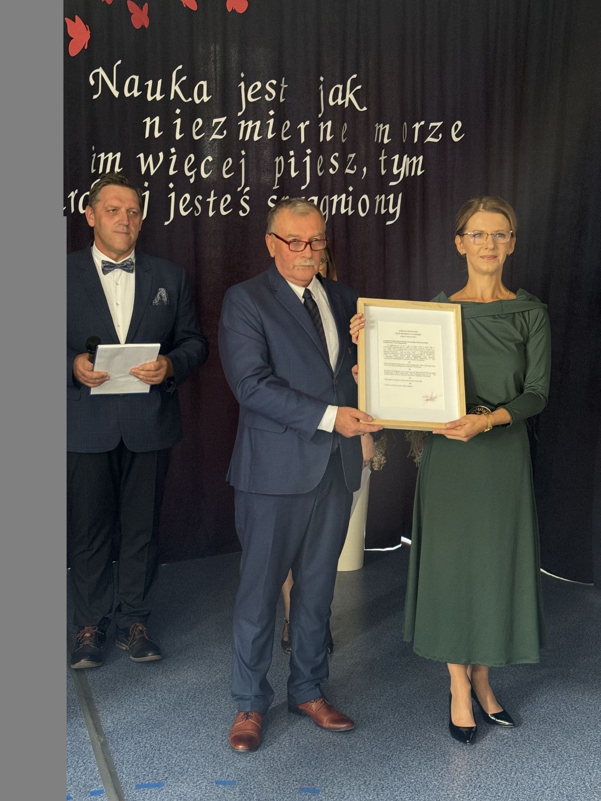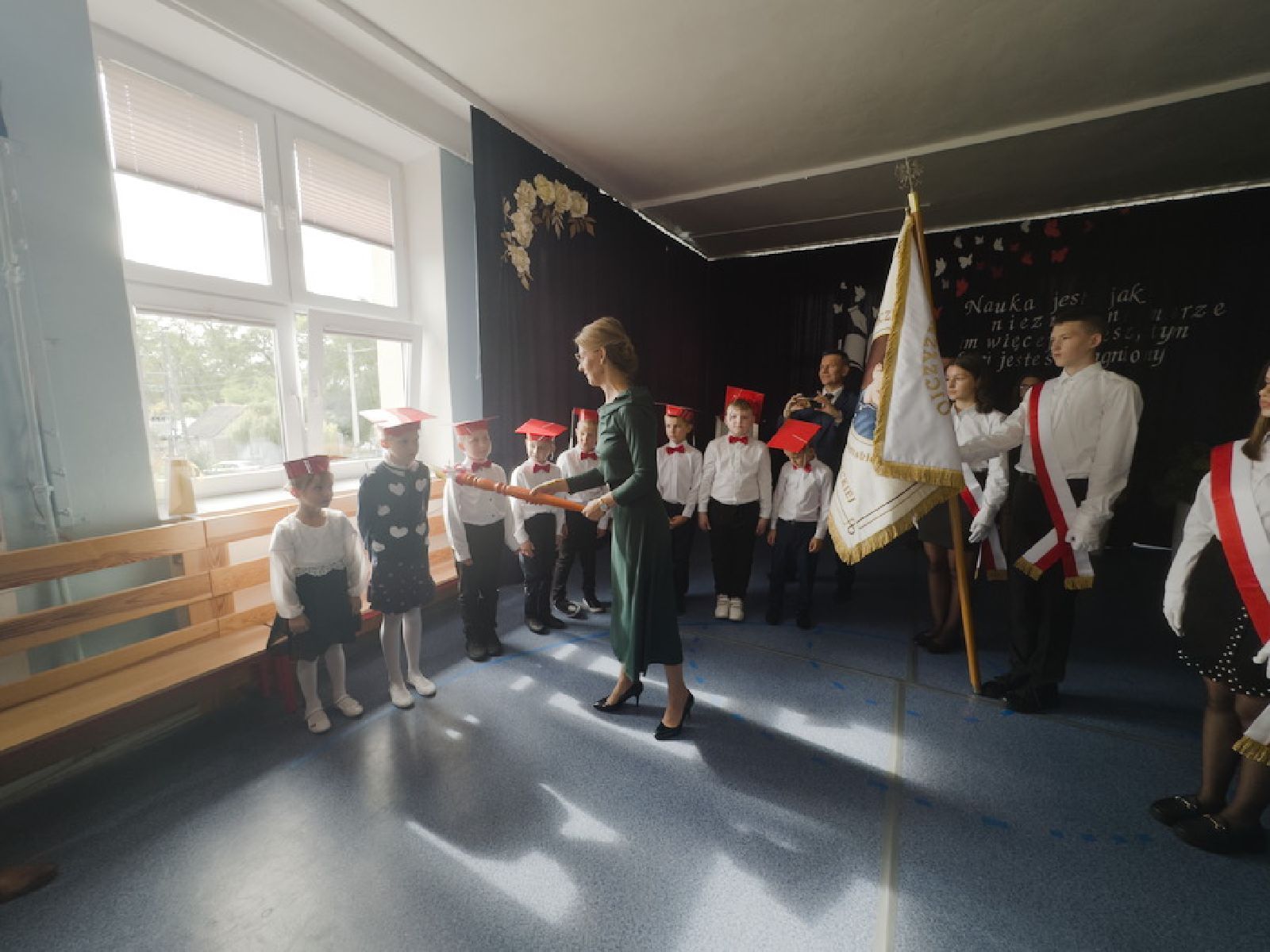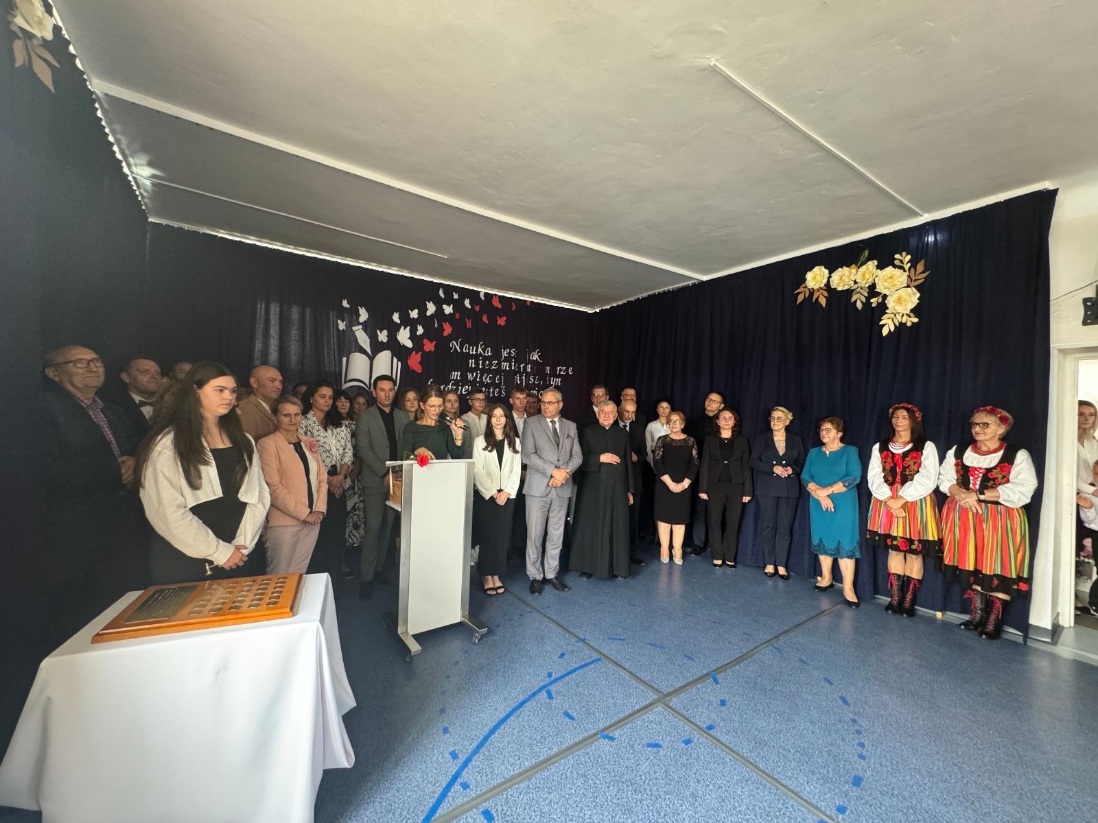 Dnia 28 września br. w Publicznej Szkole Podstawowej w Woli Lipienieckiej odbyło się uroczyste nadanie placówce imienia Stefana Żeromskiego oraz poświęcenie sztandaru szkoły. W wydarzeniu udział wzięli: Edyta Wietrak Radna Sejmiku Województwa Mazowieckiego, Agnieszka Sarnat wizytator Kuratorium Oświaty w Warszawie – Delegatura w Radomiu, Katarzyna Dujka Dyrektor Powiatowej Stacji Sanitarno-Epidemiologicznej w Szydłowcu, Cezary Sierawski Radny Powiatu Szydłowieckiego, Andrzej Bracha Burmistrz Jastrzębia, Sławomir Bińkowski Przewodniczący Rady Miejskiej w Jastrzębiu wraz z Radnymi, Agnieszka Dąbrowska Sekretarz Gminy Jastrząb, Monika Surdy Skarbnik Gminy, Anna Sadza Kierownik Gminnego Ośrodka Pomocy Społecznej w Jastrzębiu, Justyna Grzmil Kierownik Urzędu Stanu Cywilnego w Jastrzębiu, Mariusz Tomczyk Kierownik Referatu UM w Jastrzębiu, Zbigniew Tuchowski ks. proboszcz Parafii Jastrząb wraz z księdzem wikariuszem Przemysławem Mąkosą, Emilia Siudak Prezes Oddziału Związku Nauczycielstwa Polskiego w Szydłowcu, Ryszard Bodo były Dyrektor PSP w Woli Lipienieckiej, Beata Przytuła-Bińkowska Dyrektor PSP w Jastrzębiu, Marzena Sadza Dyrektor PSP w Gąsawach Rządowych, Ewa Figarska Dyrektor PSP w Nowym Dworze, Marzanna Rogala Dyrektor Przedszkola w Gąsawach Plebańskich, Jolanta Dujka Dyrektor Gminnego Żłobka w Gąsawach Plebańskich, Aneta Ziółczyńska oraz Justyna Wnukowska pracownicy UM w Jastrzębiu, Przedstawiciel OSP w Woli Lipienieckiej Małej, Przedstawicielki Stowarzyszenia Zespołu Folklorystycznego ,,Wolanki”, Koło Gospodyń Wiejskich Lipienice, Sołtysi gminy Jastrząb, nauczyciele i pracownicy PSP w Woli Lipienieckiej oraz mieszkańcy.