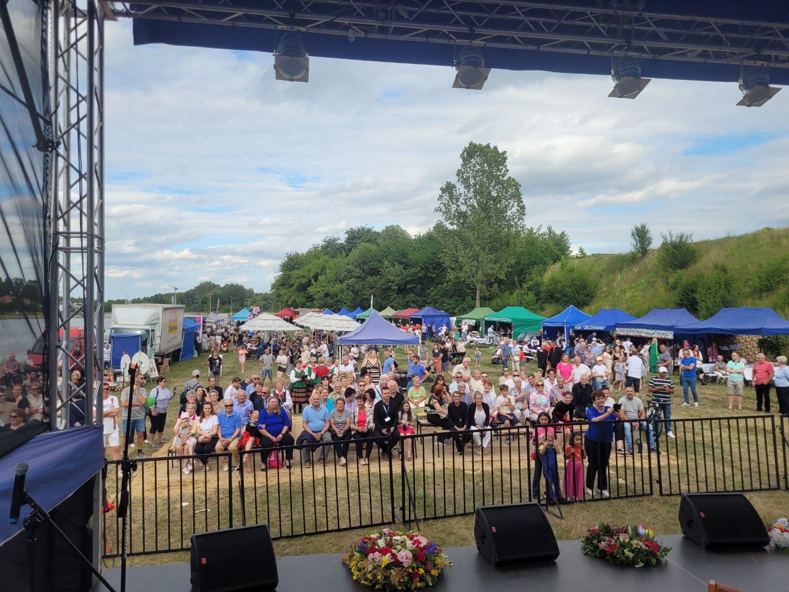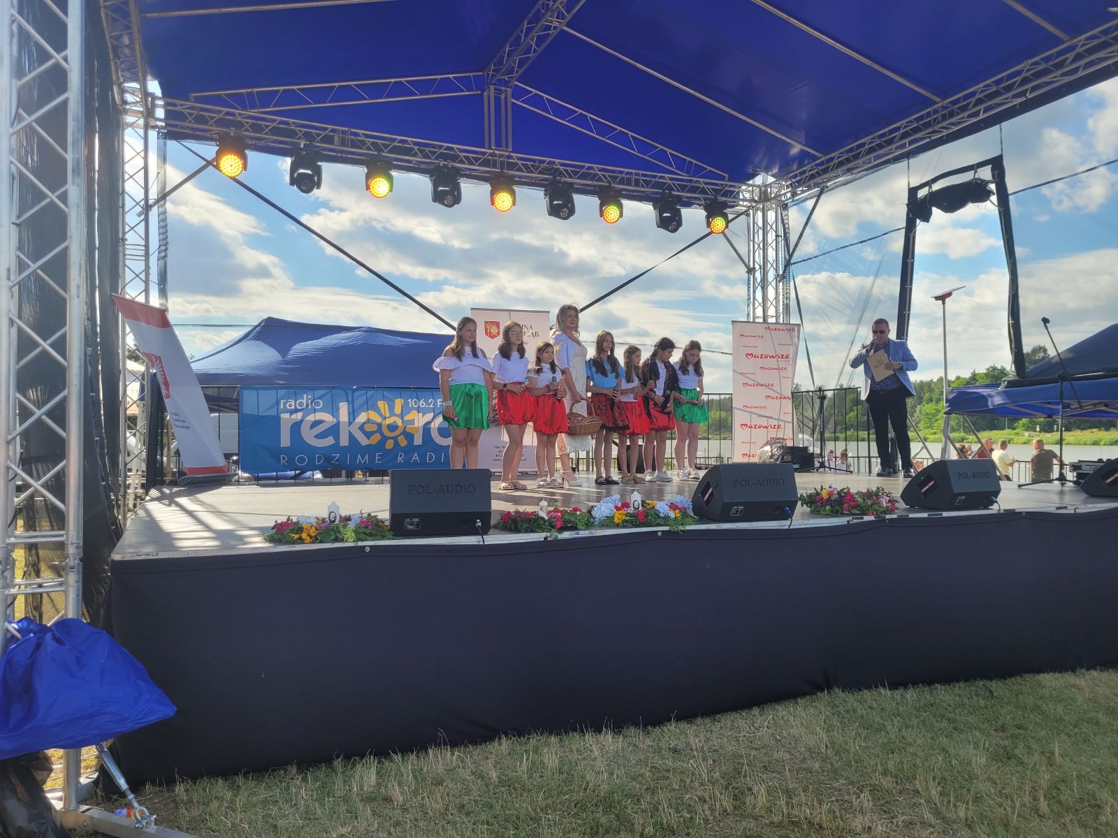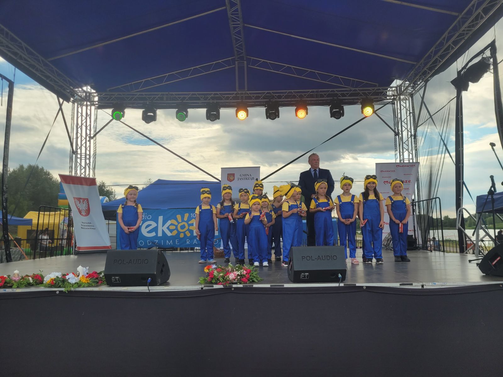 Następnie rozpoczął się blok występów artystycznych przygotowanych przez dzieci i młodzież z lokalnych szkół oraz przedszkola. Publiczność nagrodziła młodych wykonawców gromkimi brawami.Dużą dawkę energii zapewniły występy taneczne lokalnych grup: Fiesta Kids, Bravitos i Jastrzębskich Iskier. Scena należała także do seniorów z grupy teatralnej Młodzi Duchem, którzy z humorem i nostalgią nawiązali do słowiańskich tradycji nocy świętojańskiej.Nie zabrakło również folkloru, na scenie zaprezentowały się zespoły ludowe reprezentujące sołectwa naszej gminy, m.in. Lipieniczanki, Niwanki, Wolanki, Nowoczesne Babcie, Gąsawianki oraz Orłowianki.Jednym z najbardziej symbolicznych momentów wieczoru był obrzęd puszczania wianków na wodę, który przyciągnął tłumy nad brzeg zalewu. Chwilę później odbył się gościnnie występ taneczny grupy Doris Dance Crew z Radomia.Wieczorna część wydarzenia miała charakter koncertowy i widowiskowy. Na scenie pojawił się zespół Swawola, a następnie emocje podgrzał efektowny pokaz teatru ognia w wykonaniu Grupy Sarmata. Kulminacyjnym punktem programu był koncert Kapeli Górale, który zgromadził licznych fanów muzyki i porwał do wspólnego śpiewu i tańca. Świętojańską noc zakończyła zabawa taneczna prowadzona przez DJ-a Miarę, która trwała do późnych godzin nocnych.Na najmłodszych uczestników czekały darmowe atrakcje: dmuchańce, malowanie twarzy, popcorn, wata cukrowa oraz liczne gry i zabawy. Tradycyjnie dużym zainteresowaniem cieszyła się również grochówka przygotowana przez druhów z OSP Nowy Dwór, którzy jednocześnie prowadzili pokaz pierwszej pomocy.Nad bezpieczeństwem uczestników czuwali ratownicy WOPR z Radomia, strażacy z jednostek OSP Jastrząb, Gąsawy, Woli Lipienieckiej i Nowego Dworu. Dla chętnych przygotowano również przejażdżki motorówką po zalewie.Na terenie wydarzenia swoje stoiska edukacyjne i informacyjne przygotowały instytucje publiczne, m.in.: Powiatowa Stacja Sanitarno-Epidemiologiczna w Szydłowcu, Kasa Rolniczego Ubezpieczenia Społecznego, Agencja Restrukturyzacji i Modernizacji Rolnictwa, Mazowiecki Ośrodek Doradztwa Rolniczego, Komenda Powiatowa Policji, która prowadziła działania w ramach akcji „Bezpieczne wakacje”.Nie zabrakło także stoisk kulinarnych z domowymi wypiekami, potrawami regionalnymi i rękodziełem. Wyjątkowe smaki serwowały Koła Gospodyń Wiejskich z: Lipienic, Lipienic Dolnych, Orłowianek, Gąsaw Plebańskich, Kolonii Kuźnii, Nowoczesnych Babć oraz Stowarzyszenie Gąsawianki.Wydarzenie zostało zorganizowane przez Gminę Jastrząb przy współpracy z Samorządem Województwa Mazowieckiego, a patronat honorowy nad Świętojankami objął Marszałek Województwa Mazowieckiego.Dziękujemy wszystkim mieszkańcom oraz przybyłym gościom za obecność, wspólne świętowanie i wyjątkową atmosferę. Do zobaczenia podczas kolejnych wydarzeń organizowanych nad Zalewem w Jastrzębiu!