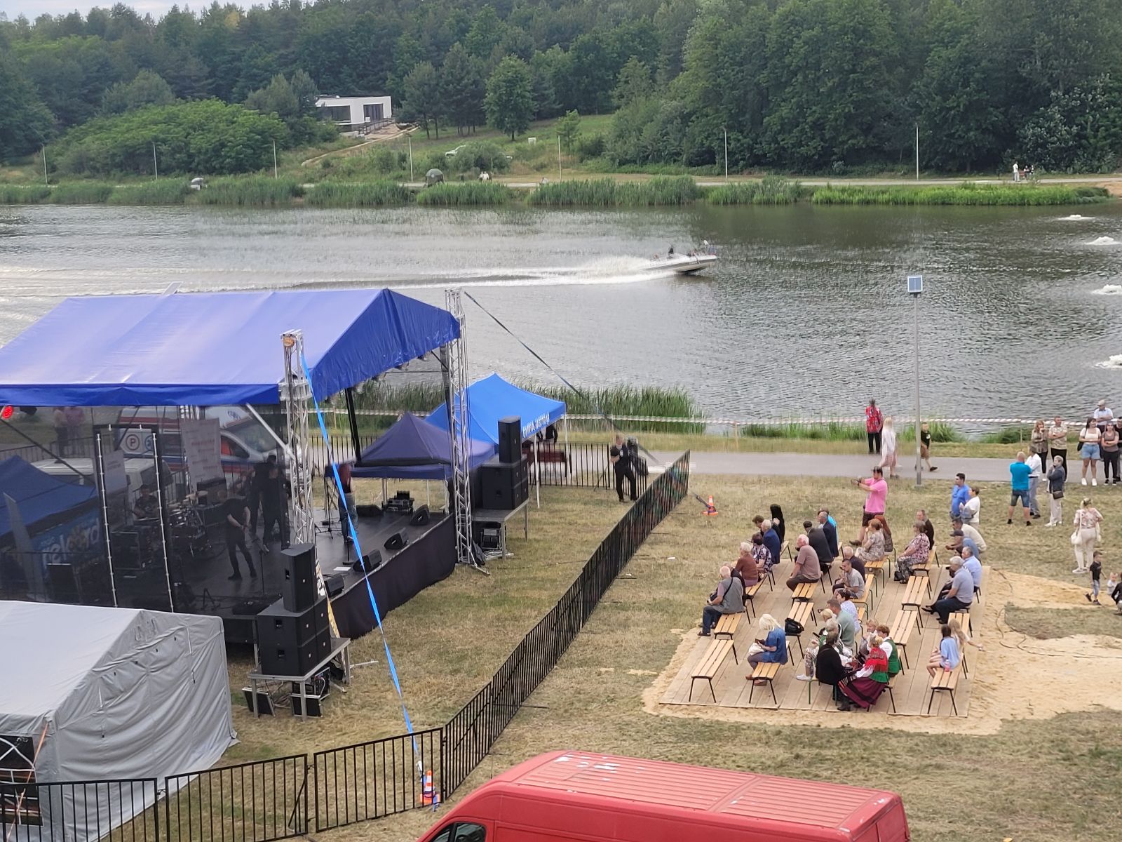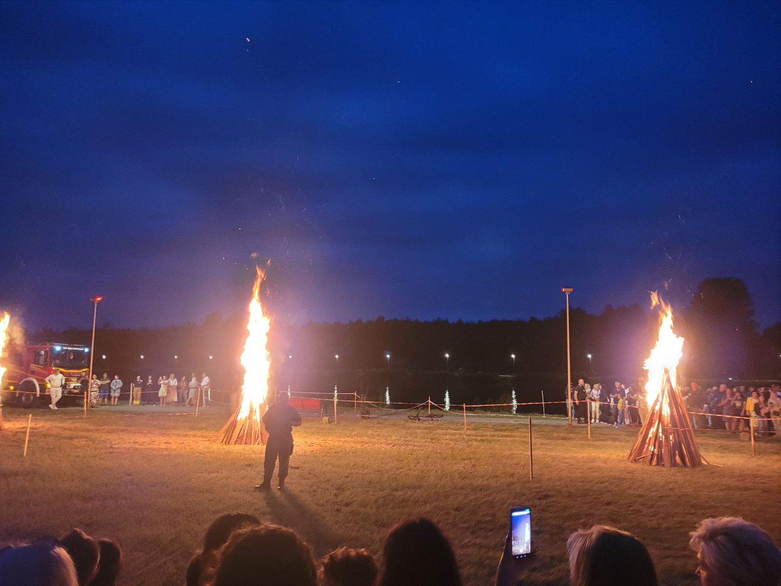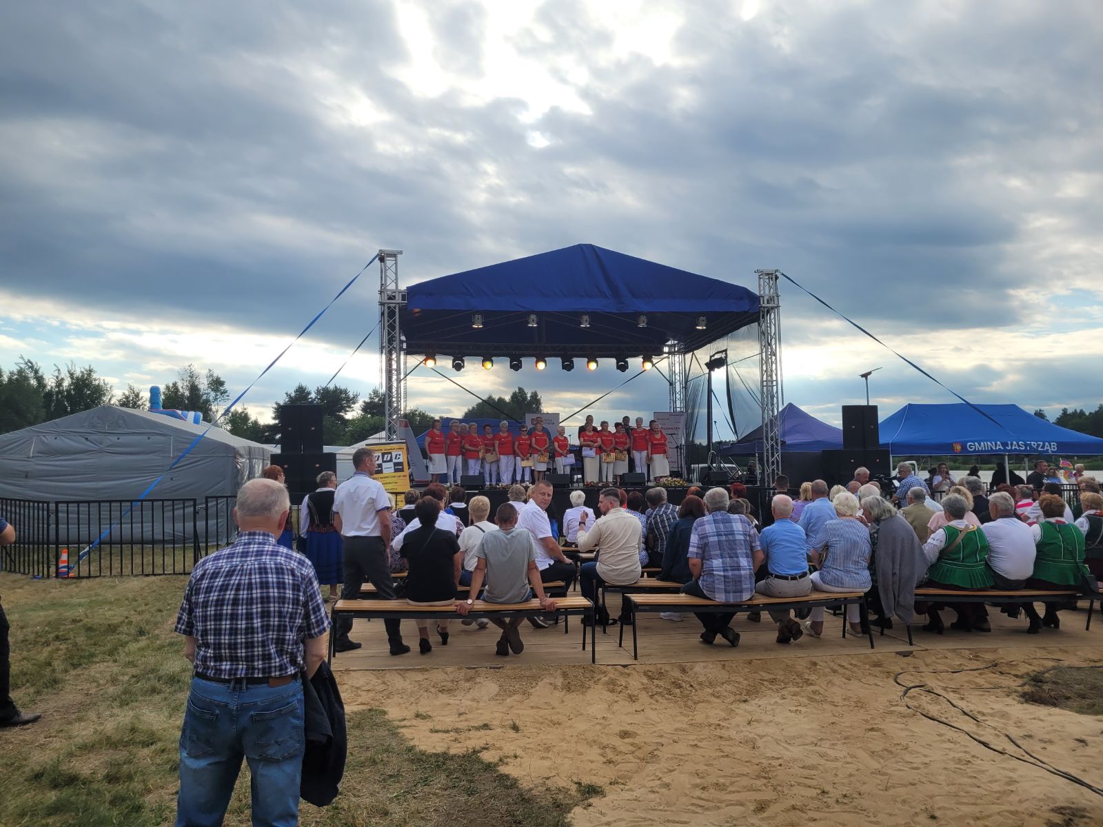 Następnie rozpoczął się blok występów artystycznych przygotowanych przez dzieci i młodzież z lokalnych szkół oraz przedszkola. Publiczność nagrodziła młodych wykonawców gromkimi brawami.Dużą dawkę energii zapewniły występy taneczne lokalnych grup: Fiesta Kids, Bravitos i Jastrzębskich Iskier. Scena należała także do seniorów z grupy teatralnej Młodzi Duchem, którzy z humorem i nostalgią nawiązali do słowiańskich tradycji nocy świętojańskiej.Nie zabrakło również folkloru, na scenie zaprezentowały się zespoły ludowe reprezentujące sołectwa naszej gminy, m.in. Lipieniczanki, Niwanki, Wolanki, Nowoczesne Babcie, Gąsawianki oraz Orłowianki.Jednym z najbardziej symbolicznych momentów wieczoru był obrzęd puszczania wianków na wodę, który przyciągnął tłumy nad brzeg zalewu. Chwilę później odbył się gościnnie występ taneczny grupy Doris Dance Crew z Radomia.Wieczorna część wydarzenia miała charakter koncertowy i widowiskowy. Na scenie pojawił się zespół Swawola, a następnie emocje podgrzał efektowny pokaz teatru ognia w wykonaniu Grupy Sarmata. Kulminacyjnym punktem programu był koncert Kapeli Górale, który zgromadził licznych fanów muzyki i porwał do wspólnego śpiewu i tańca. Świętojańską noc zakończyła zabawa taneczna prowadzona przez DJ-a Miarę, która trwała do późnych godzin nocnych.Na najmłodszych uczestników czekały darmowe atrakcje: dmuchańce, malowanie twarzy, popcorn, wata cukrowa oraz liczne gry i zabawy. Tradycyjnie dużym zainteresowaniem cieszyła się również grochówka przygotowana przez druhów z OSP Nowy Dwór, którzy jednocześnie prowadzili pokaz pierwszej pomocy.Nad bezpieczeństwem uczestników czuwali ratownicy WOPR z Radomia, strażacy z jednostek OSP Jastrząb, Gąsawy, Woli Lipienieckiej i Nowego Dworu. Dla chętnych przygotowano również przejażdżki motorówką po zalewie.Na terenie wydarzenia swoje stoiska edukacyjne i informacyjne przygotowały instytucje publiczne, m.in.: Powiatowa Stacja Sanitarno-Epidemiologiczna w Szydłowcu, Kasa Rolniczego Ubezpieczenia Społecznego, Agencja Restrukturyzacji i Modernizacji Rolnictwa, Mazowiecki Ośrodek Doradztwa Rolniczego, Komenda Powiatowa Policji, która prowadziła działania w ramach akcji „Bezpieczne wakacje”.Nie zabrakło także stoisk kulinarnych z domowymi wypiekami, potrawami regionalnymi i rękodziełem. Wyjątkowe smaki serwowały Koła Gospodyń Wiejskich z: Lipienic, Lipienic Dolnych, Orłowianek, Gąsaw Plebańskich, Kolonii Kuźnii, Nowoczesnych Babć oraz Stowarzyszenie Gąsawianki.Wydarzenie zostało zorganizowane przez Gminę Jastrząb przy współpracy z Samorządem Województwa Mazowieckiego, a patronat honorowy nad Świętojankami objął Marszałek Województwa Mazowieckiego.Dziękujemy wszystkim mieszkańcom oraz przybyłym gościom za obecność, wspólne świętowanie i wyjątkową atmosferę. Do zobaczenia podczas kolejnych wydarzeń organizowanych nad Zalewem w Jastrzębiu!