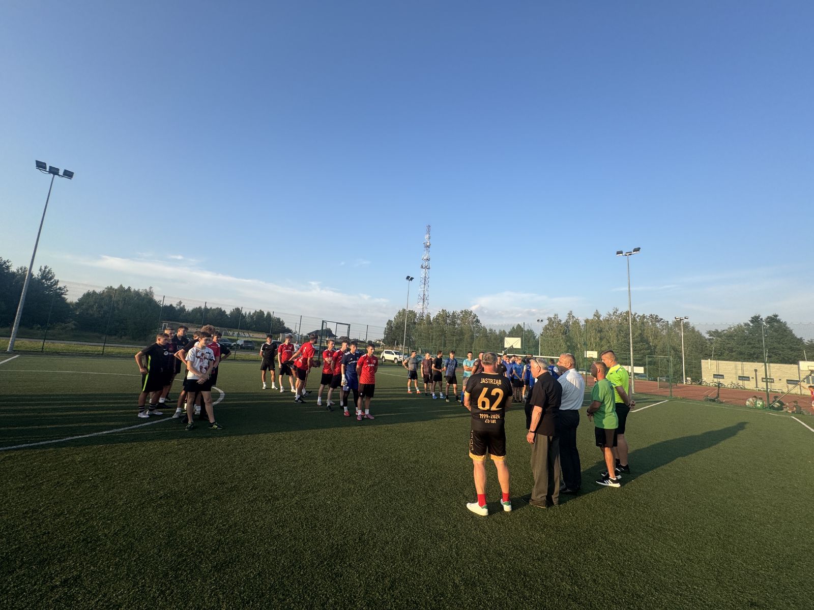 W sobotni wieczór 9 sierpnia br., punktualnie o godz. 19.00 odbył się Nocny Turniej Piłki Nożnej o Puchar Burmistrza Jastrzębia i Proboszcza Parafii Jastrząb, który po raz kolejny udowodnił, że sport łączy ludzi. Zanim jednak zabrzmiał gwizdek sędziego zgromadzonych zawodników i kibiców powitali: Burmistrz Jastrzębia Andrzej Bracha, Przewodniczący Rady Miejskiej Sławomir Bińkowski, Proboszcz Parafii Jastrząb Zbigniew Tuchowski oraz Prezes GKS Jastrząb Jacek Ralcewicz. W krótkich przemówieniach podkreślili wagę sportowej rywalizacji oraz zasady gry fair play. Na zakończenie oficjalnej części Turnieju Burmistrz wraz z Proboszczem symbolicznie wymienili między sobą kilka podań piłką, rozpoczynając tym samym sportowe zmagania.