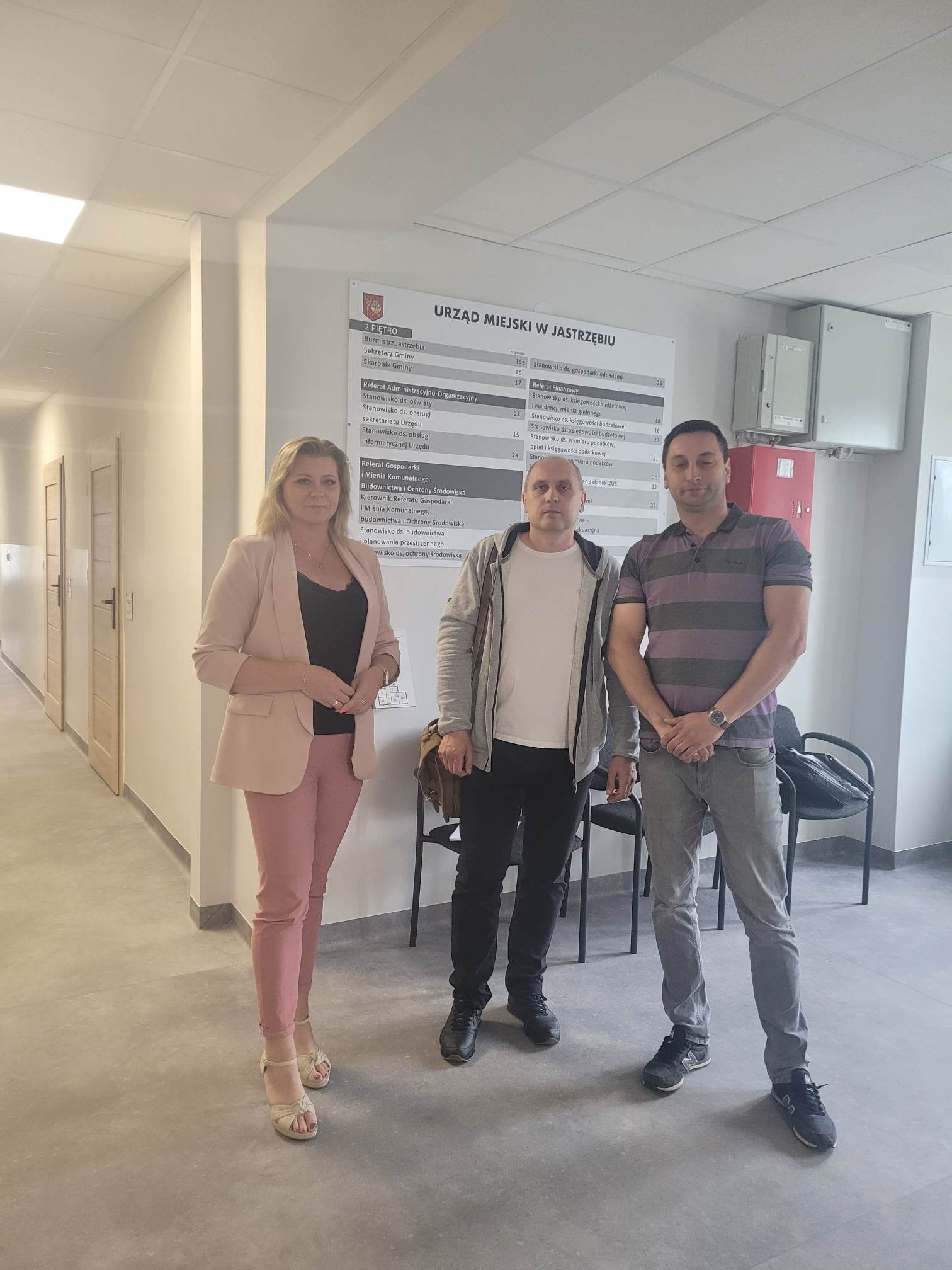W dniu 13 czerwca br. po generalnym remoncie nastąpił odbiór wykonanych prac w budynku Urzędu Miejskiego w Jastrzębiu. W odbiorze prac uczestniczyli: Sekretarz Gminy Jastrząb Agnieszka Dąbrowska, Inspektor Nadzoru Rafał Tomczyk oraz Właściciel Firmy EM-BUD wykonywujący remont Michał Milczarczyk.