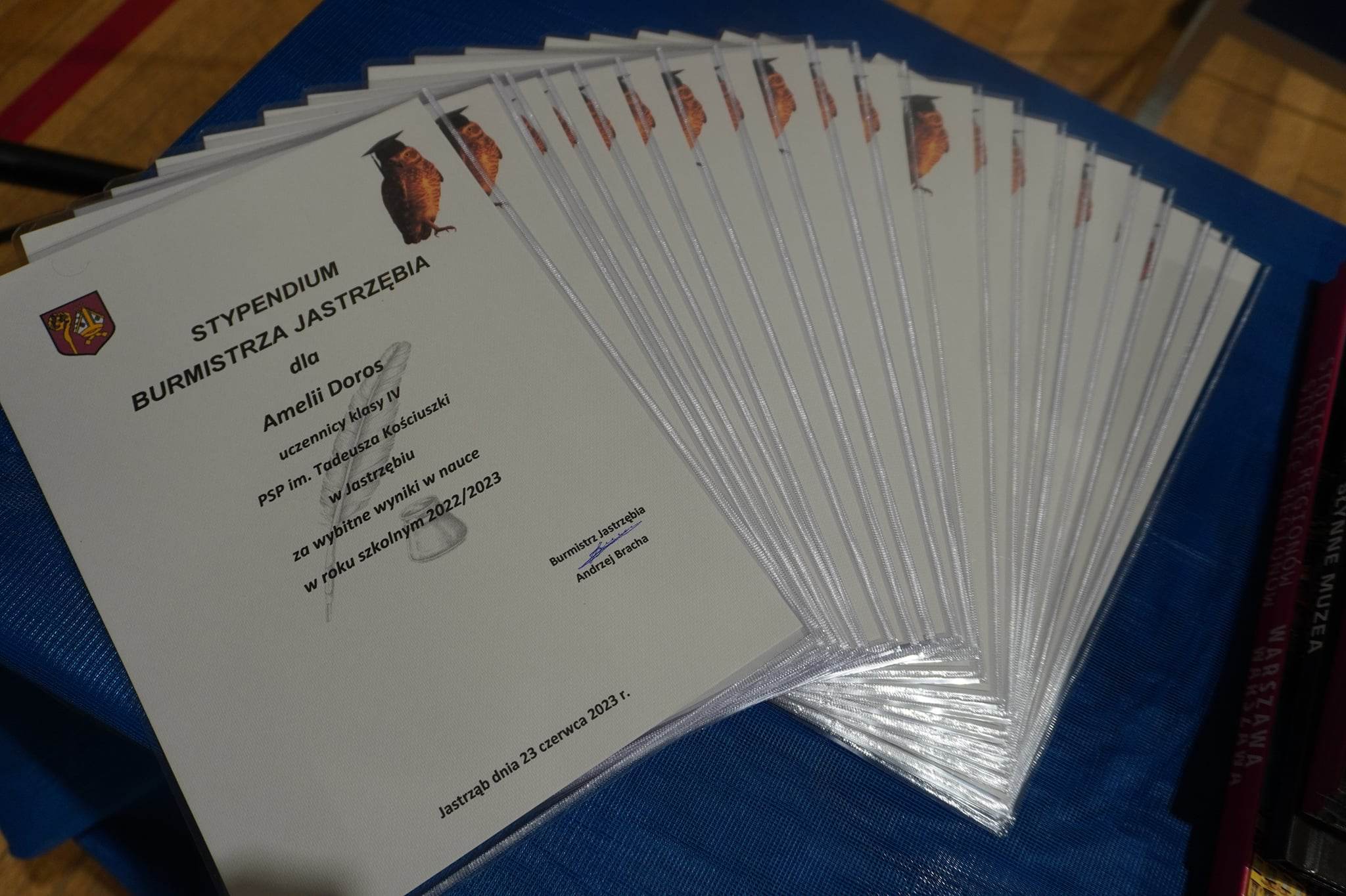 23 czerwca 2023r. w czasie uroczystości zakończenia roku szkolnego Burmistrz Jastrzębia Pan Andrzej Bracha w celu realizacji Lokalnego programu wspierania edukacji uzdolnionych uczniów uczęszczających do publicznych szkół podstawowych funkcjonujących na terenie Gminy Jastrząb wręczył 39 uczniom stypendia Burmistrza Jastrzębia w wysokości po 500 złotych dla uczniów za wybitne wyniki w nauce osiągnięte w roku szkolnym 2022/2023. Z PSP w Nowym Dworze za wysokie wyniki w nauce nagrodzony został: Borys Gromek. Uczniami z najwyższą średnią z PSP w Gąsawach Rządowych nagrodzonymi przez Burmistrza byli: Urszula Próchnicka, Oskar Czarnota, Angelika Rogala.