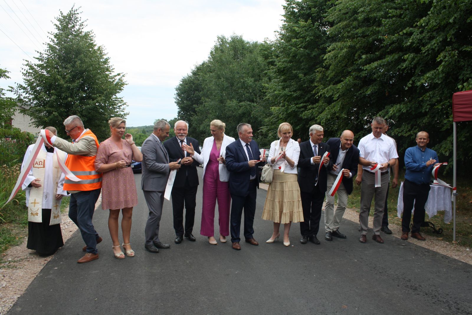 W dniu 17 lipca br. odbyło się uroczyste otwarcie oraz poświęcenie przebudowy dwóch dróg na terenie Gminy Jastrząb. Na miejscu zaproszonych gości przywitał Burmistrz Jastrzębia Andrzej Bracha oraz Przewodniczący Rady Miejskiej w Jastrzębiu Sławomir Bińkowski. Następnie głos zabrali przybyli goście. Po przemówieniach dokonano symbolicznego przecięcia wstęgi, w którym wzięli udział posłowie: Agnieszka Górska, Anna Kwiecień, Marek Suski, Andrzej Kosztowniak, Dariusz Bąk oraz Wicewojewoda Mazowiecki Artur Standowicz, Burmistrz Jastrzębia Andrzej Bracha, Przewodniczący Rady Miejskiej Sławomir Bińkowski, Sekretarz Gminy Agnieszka Dąbrowska, Skarbnik Gminy Monika Surdy, ksiądz wikariusz Przemysław Mąkosa, przedstawiciele firmy BUDROMOST, sołtysi i mieszkańcy.