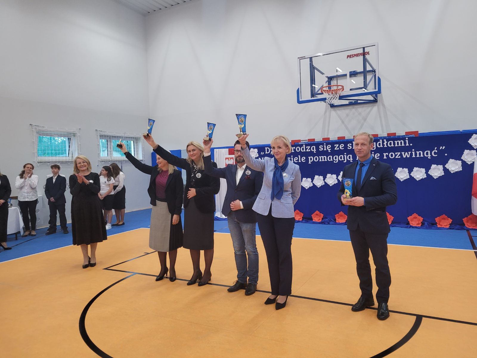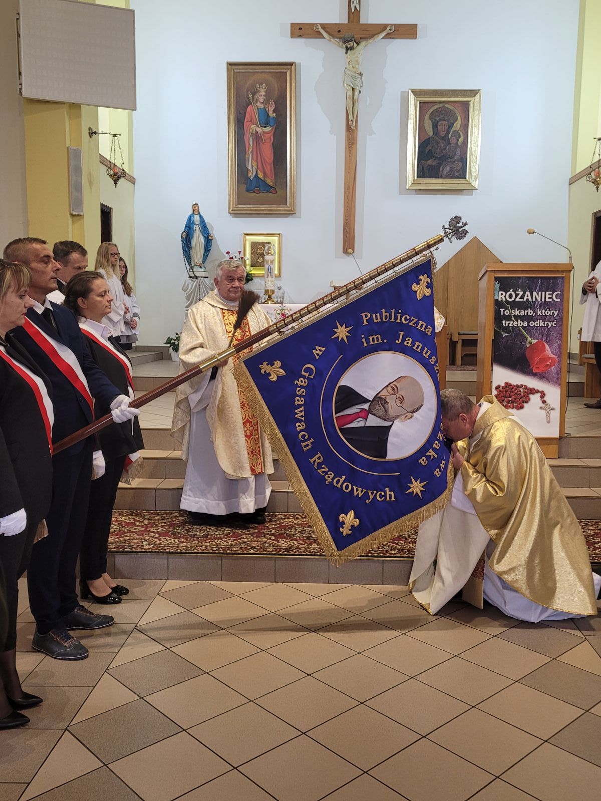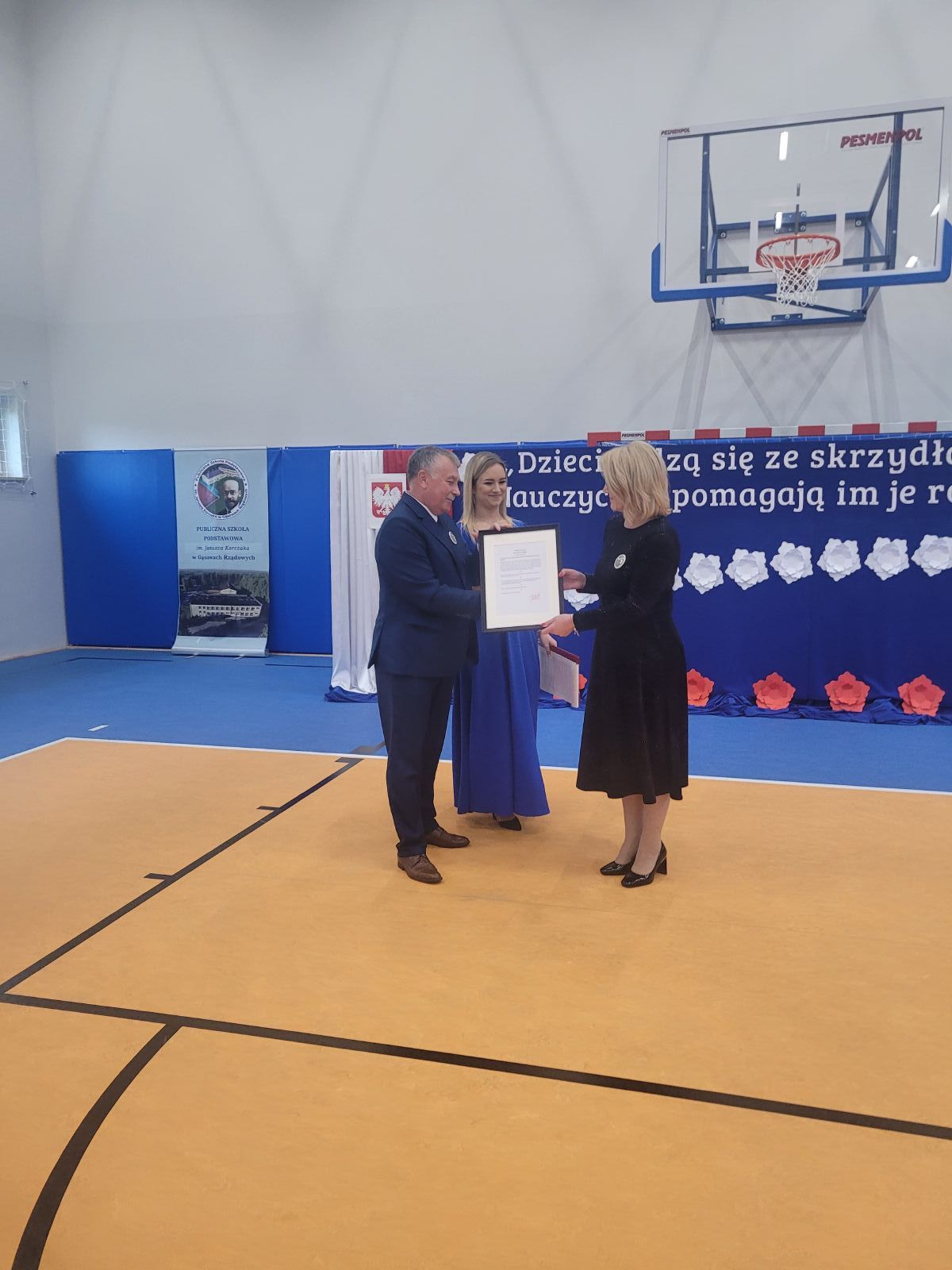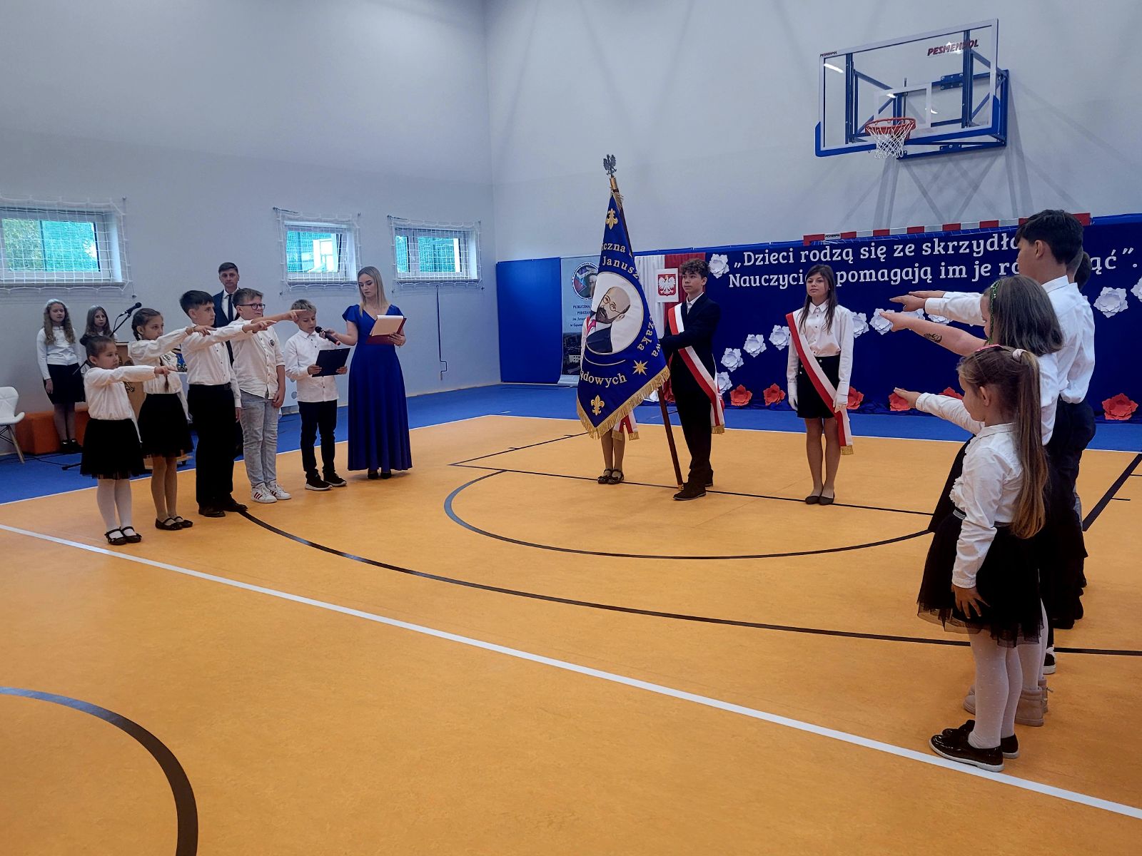 W dniu 7 października br. odbyło się oficjalne otwarcie sali gimnastycznej oraz nadanie imienia i sztandaru Publicznej Szkole Podstawowej im. Janusza Korczaka w Gąsawach Rządowych. Uroczystość rozpoczęła się mszą świętą w pobliskim kościele pod wezwaniem Świętego Edwarda. Ceremonię mszalną odprawił ksiądz proboszcz Krzysztof Świątek oraz gościnnie ksiądz proboszcz parafii Jastrząb Zbigniew Tuchowski. Podczas nabożeństwa poświęcono nowy sztandar szkoły. Po czym wszyscy zaproszeni goście wraz z mieszkańcami udali się w przemarszu do nowego wybudowanego obiektu, gdzie rozpoczęła się oficjalna ceremonia otwarcia sali. W wydarzeniu uczestniczyli posłowie RP: Agnieszka Górska, Anna Kwiecień, Radosław Fogiel jak również Aurelia Michałowska - Mazowiecki Kurator Oświaty, Adrian Barański - Dyrektor Kuratorium Oświaty w Warszawie, Delegatura w Radomiu, Edyta Wietrak - Kierownik Biura Powiatowego ARiMR w Szydłowcu, Katarzyna Dujka - Dyrektor Powiatowej Stacji Sanitarno-Epidemiologicznej w Szydłowcu, Andrzej Bracha - Burmistrz Jastrzębia wraz z małżonką Barbarą Brachą, Sławomir Bińkowski - Przewodniczący Rady Miejskiej wraz z Radnymi, Agnieszka Dąbrowska - Sekretarz Gminy, Mariusz Tomczyk - Kierownik Referatu, Justyna Grzmil - Kierownik Urzędu Stanu Cywilnego w Jastrzębiu, pracownicy Urzędu Miejskiego, Paweł i Przemysław Wiatrak - właściciele firmy Wiatrobud II (wykonawcy przedmiotowej sali gimnastycznej), Rafał Tomczyk - Projektant Inwestycji, Dyrektorzy pobliskich szkół, przedszkoli i żłobka, grono pedagogiczne wraz z emerytowanymi nauczycielami, przedstawiciele Kół Gospodyń Wiejskich, rodzice, uczniowie oraz mieszkańcy.