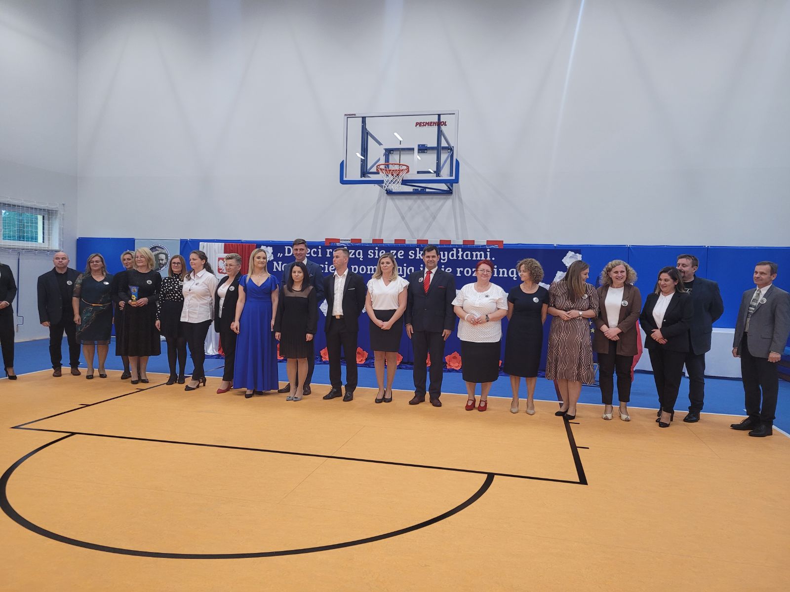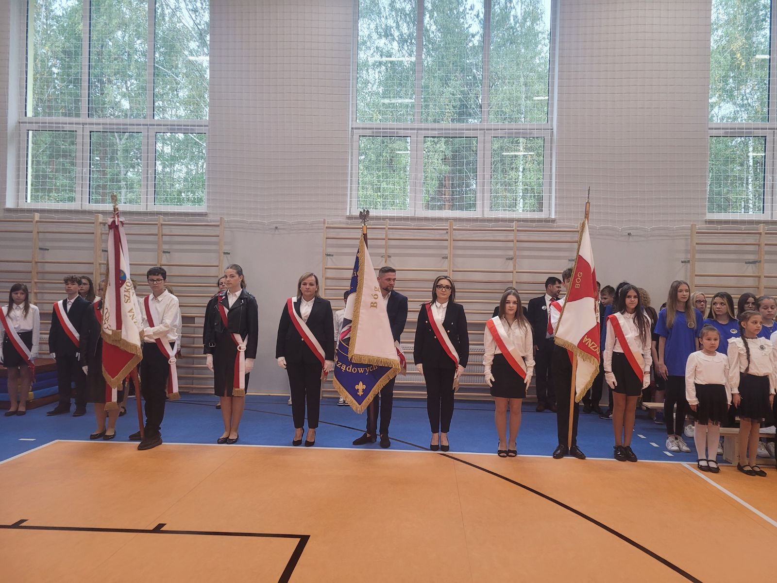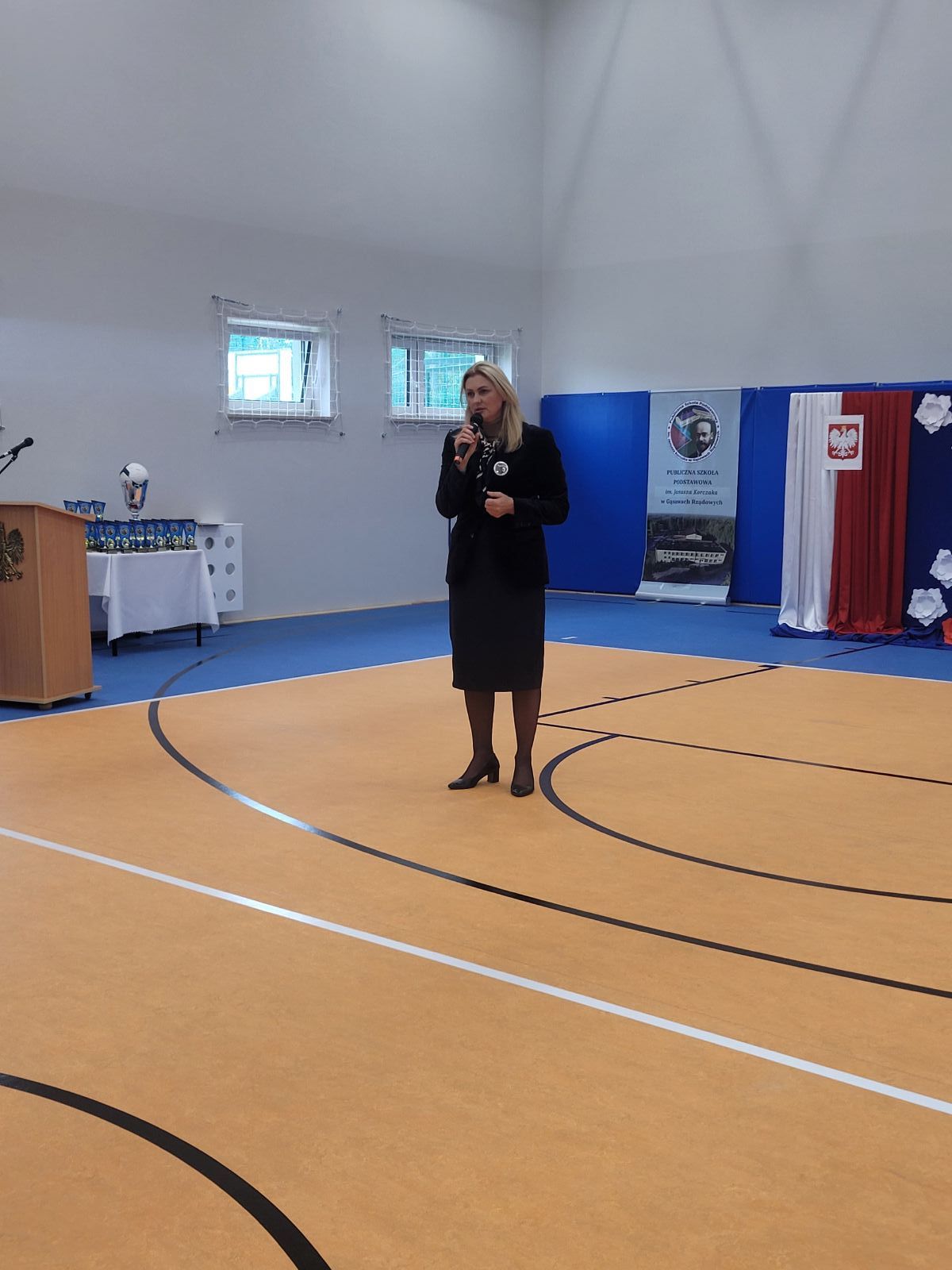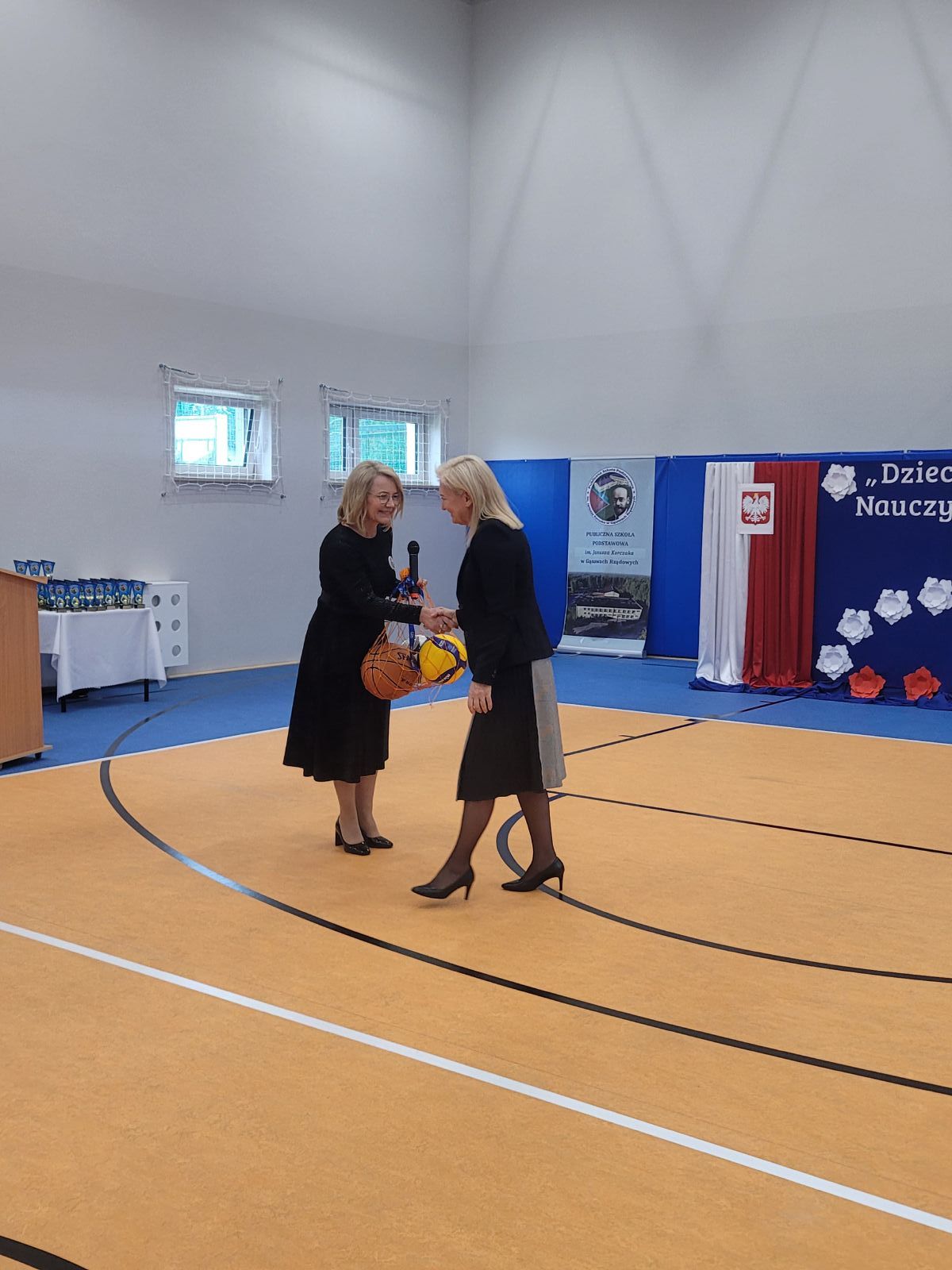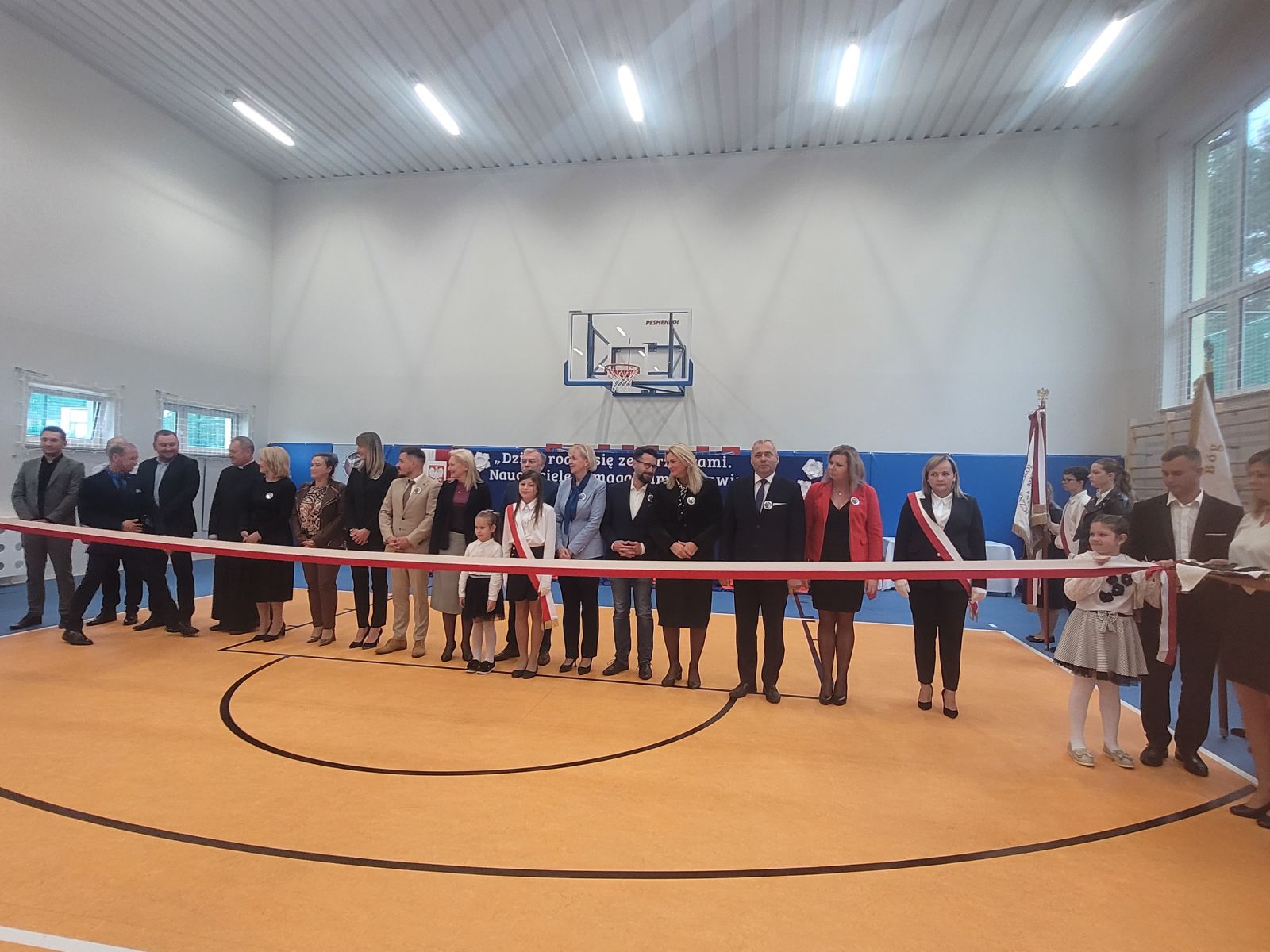 Uroczystość otworzyła Marzena Sadza - Dyrektor PSP w Gąsawach Rządowych, która przywitała wszystkich zaproszonych gości. W swoim wystąpieniu podkreśliła jak ważne dla uczniów oraz nauczycieli jest wybudowanie nowej sali gimnastycznej, jak również ze wzruszeniem podziękowała wszystkim zaangażowanym osobom w realizację tej dużej inwestycji. Następnie Ksiądz Proboszcz Krzysztof Świątek dokonał poświęcenia nowo wybudowanego obiektu. Po czym nastąpiło najbardziej oczekujące wydarzenie tego dnia, mianowicie akt przecięcia wstęgi, które ostatecznie potwierdziło, że sala gimnastyczna została oddana do użytku i odtąd ma służyć idei upowszechniania sportu w środowisku lokalnym. Wbito również symboliczne małe gwoździe w sztandar szkoły. W dalszej części uroczystości przekazano mikrofon zaproszonym gościom. W przemówieniach nie brakowało gratulacji i życzeń, kierowanych szczególnie do uczniów. Życzono im m.in. powodzenia w rozgrywkach sportowych, wręczając przy tym, na dobry początek, upominki głównie w postaci sprzętu sportowego. Po oficjalnej części uroczystości uczniowie szkoły przygotowali niesamowicie interesujący i barwny program artystyczny. Występy dzieci cieszyły się ogromnym zainteresowaniem. Były chwile wzruszające i pełne radości. Po zakończeniu przedstawień Dyrekcja przygotowała dla zaproszonych gości piękne statuetki upamiętniające ten uroczysty dzień. Został również przygotowany tort z wizerunkiem samego patrona szkoły. Z pewnością dzień ten zapisze się w sposób szczególny w historii szkoły, jako pełen radości, wzruszeń i spełnionych marzeń, nie tylko dla Dyrekcji ale dla wszystkich mieszkańców Gąsaw Rządowych. Warto podkreślić, że inwestycja ta pod nazwą „Budowa sali gimnastycznej wraz z łącznikiem do istniejącego budynku Publicznej Szkoły Podstawowej w Gąsawach Rządowych wraz z wyposażeniem” obejmowała budowę budynku sali gimnastycznej z zapleczem wraz z wewnętrznymi instalacjami: wentylacji, wody, kanalizacji sanitarnej i instalacji elektrycznej. Sala gimnastyczna jest połączona z łącznikiem z budynkiem istniejącej PSP. Parametry inwestycji: powierzchnia użytkowa- 489,23 m², powierzchnia całkowita - 555,12 m², wysokość budynku - 10,83 m, szerokość budynku 15,50 m, długość budynku - 40,70 m. Wyposażenie m.in. drabinki sportowe, bramki, materace, tablice do koszykówki, słupki do siatki, ławki itp. Na to zadanie gmina otrzymała promesę w kwocie 2 765 286,00 zł, dofinansowaną z Funduszu Rządowego Polski Ład. Całkowita wartość zadania wyniosła 3 072 540,00 zł.