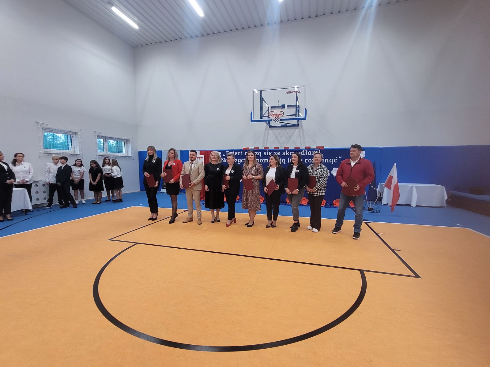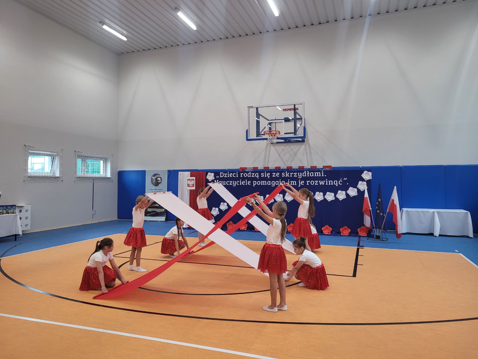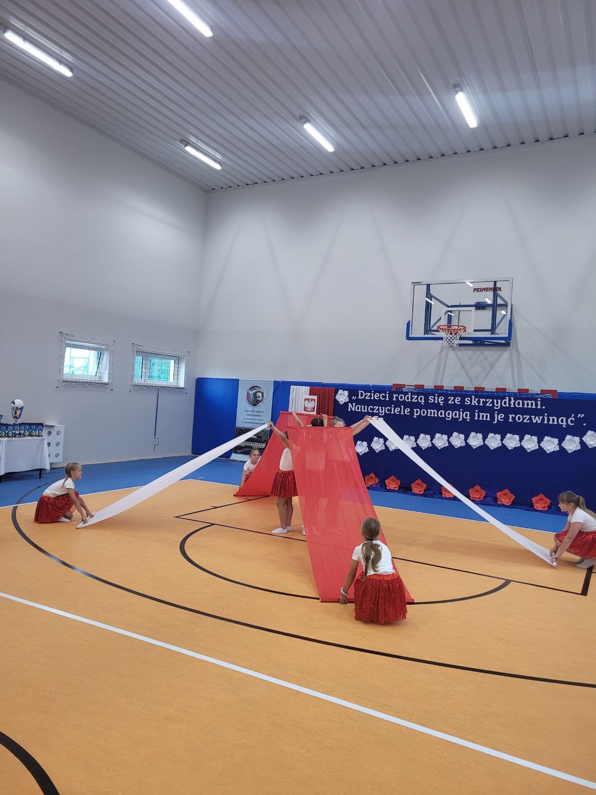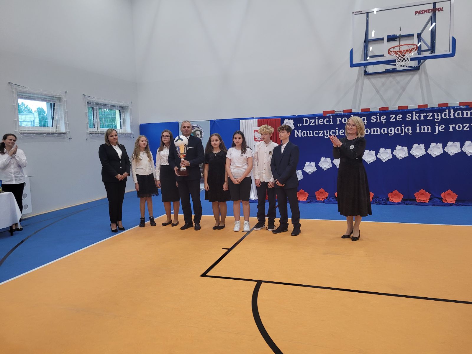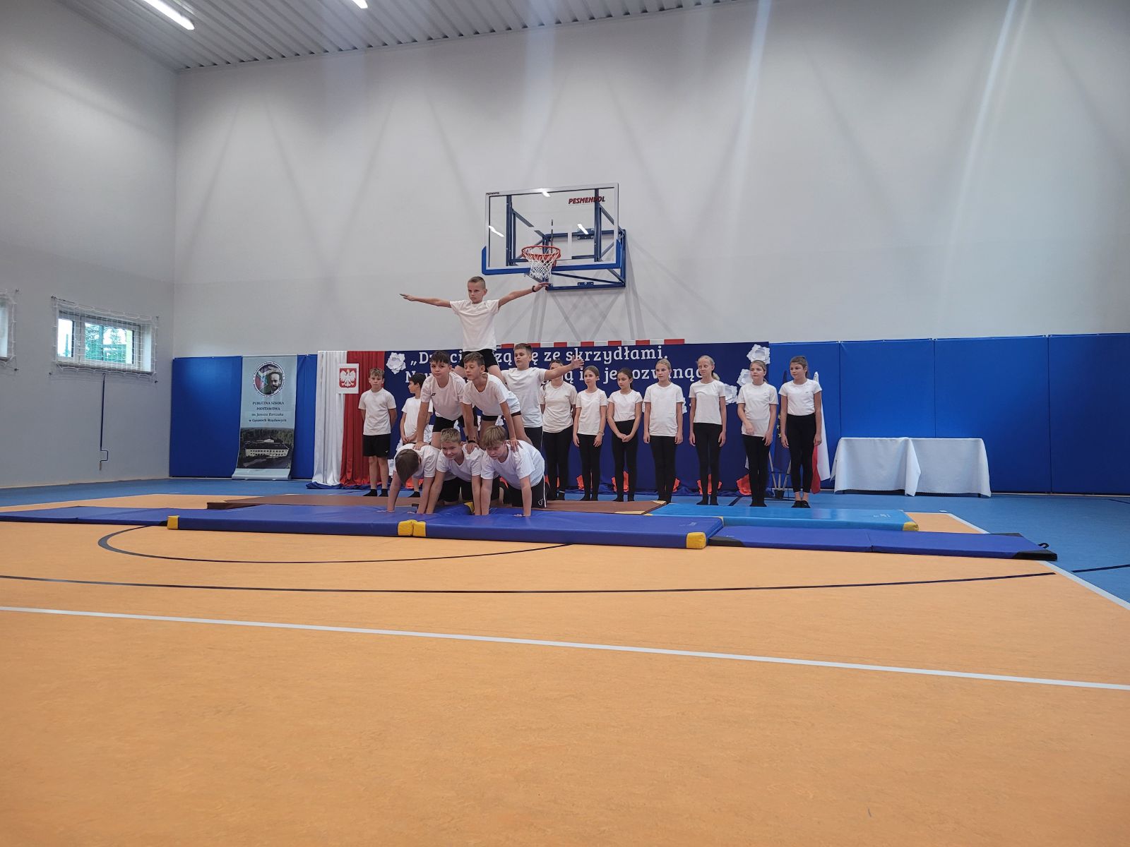 Uroczystość otworzyła Marzena Sadza - Dyrektor PSP w Gąsawach Rządowych, która przywitała wszystkich zaproszonych gości. W swoim wystąpieniu podkreśliła jak ważne dla uczniów oraz nauczycieli jest wybudowanie nowej sali gimnastycznej, jak również ze wzruszeniem podziękowała wszystkim zaangażowanym osobom w realizację tej dużej inwestycji. Następnie Ksiądz Proboszcz Krzysztof Świątek dokonał poświęcenia nowo wybudowanego obiektu. Po czym nastąpiło najbardziej oczekujące wydarzenie tego dnia, mianowicie akt przecięcia wstęgi, które ostatecznie potwierdziło, że sala gimnastyczna została oddana do użytku i odtąd ma służyć idei upowszechniania sportu w środowisku lokalnym. Wbito również symboliczne małe gwoździe w sztandar szkoły. W dalszej części uroczystości przekazano mikrofon zaproszonym gościom. W przemówieniach nie brakowało gratulacji i życzeń, kierowanych szczególnie do uczniów. Życzono im m.in. powodzenia w rozgrywkach sportowych, wręczając przy tym, na dobry początek, upominki głównie w postaci sprzętu sportowego. Po oficjalnej części uroczystości uczniowie szkoły przygotowali niesamowicie interesujący i barwny program artystyczny. Występy dzieci cieszyły się ogromnym zainteresowaniem. Były chwile wzruszające i pełne radości. Po zakończeniu przedstawień Dyrekcja przygotowała dla zaproszonych gości piękne statuetki upamiętniające ten uroczysty dzień. Został również przygotowany tort z wizerunkiem samego patrona szkoły. Z pewnością dzień ten zapisze się w sposób szczególny w historii szkoły, jako pełen radości, wzruszeń i spełnionych marzeń, nie tylko dla Dyrekcji ale dla wszystkich mieszkańców Gąsaw Rządowych. Warto podkreślić, że inwestycja ta pod nazwą „Budowa sali gimnastycznej wraz z łącznikiem do istniejącego budynku Publicznej Szkoły Podstawowej w Gąsawach Rządowych wraz z wyposażeniem” obejmowała budowę budynku sali gimnastycznej z zapleczem wraz z wewnętrznymi instalacjami: wentylacji, wody, kanalizacji sanitarnej i instalacji elektrycznej. Sala gimnastyczna jest połączona z łącznikiem z budynkiem istniejącej PSP. Parametry inwestycji: powierzchnia użytkowa- 489,23 m², powierzchnia całkowita - 555,12 m², wysokość budynku - 10,83 m, szerokość budynku 15,50 m, długość budynku - 40,70 m. Wyposażenie m.in. drabinki sportowe, bramki, materace, tablice do koszykówki, słupki do siatki, ławki itp. Na to zadanie gmina otrzymała promesę w kwocie 2 765 286,00 zł, dofinansowaną z Funduszu Rządowego Polski Ład. Całkowita wartość zadania wyniosła 3 072 540,00 zł.