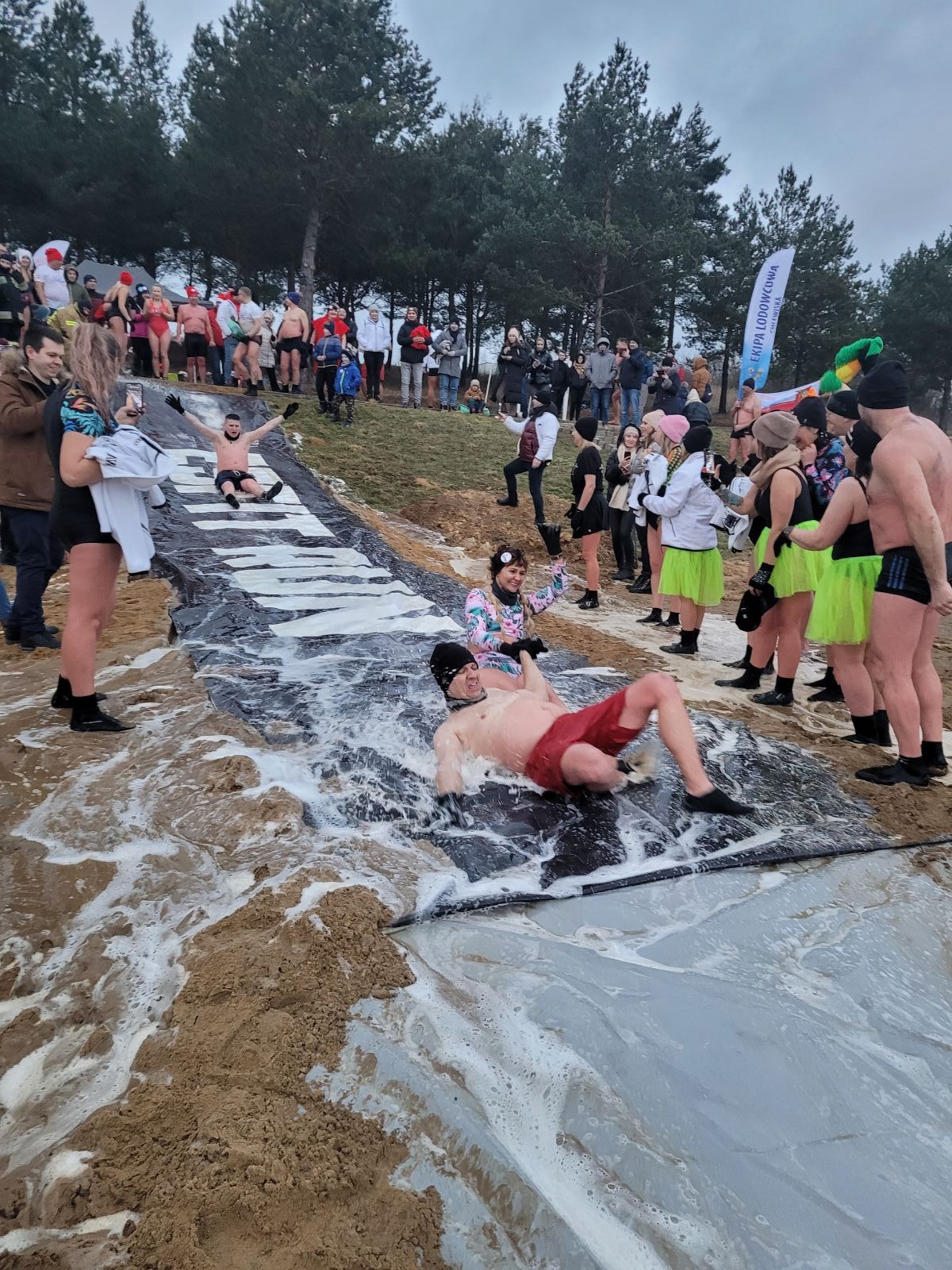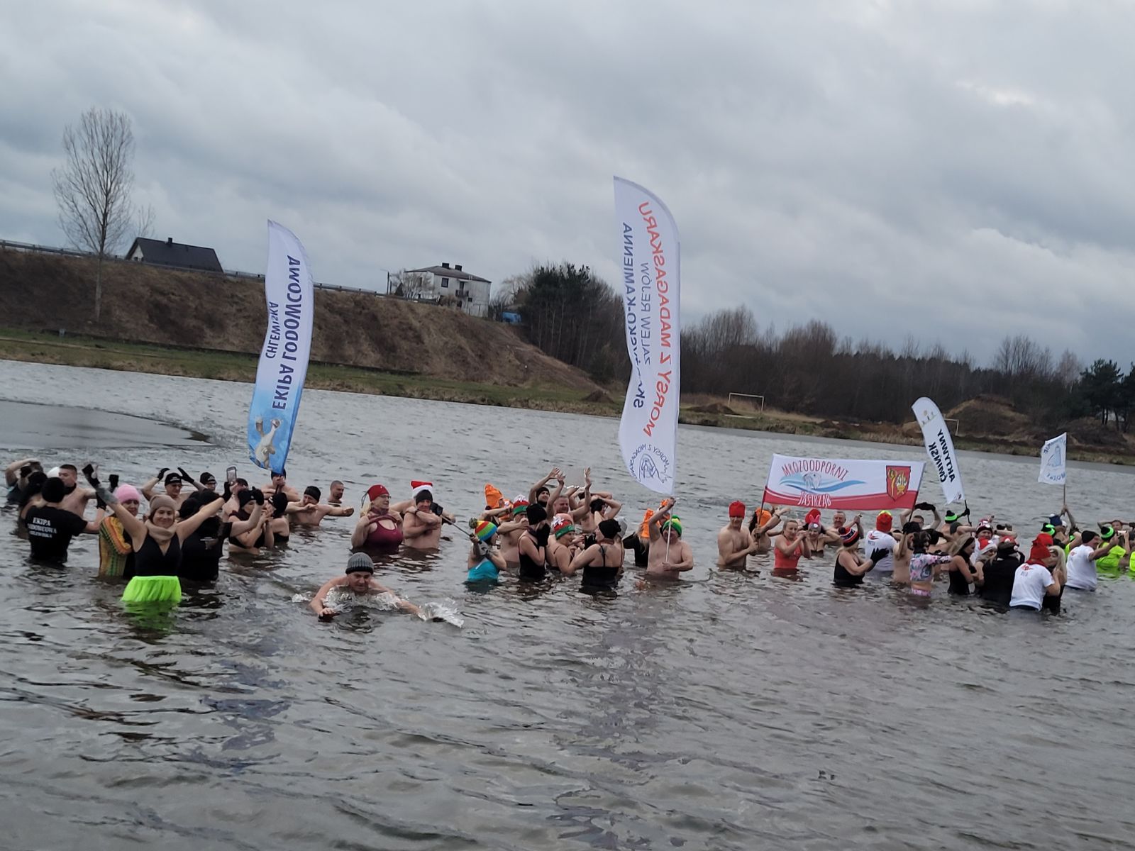 Wszyscy zebrani mogli także rozgrzać się przy ognisku. W trakcie imprezy została zorganizowana akcja charytatywna. Zbiórka i licytacja dla chorego Norberta, który odzyskuje sprawność po ciężkim wypadku. Całe zebrane pieniądze zostaną przeznaczone na rehabilitację Norberta. Nad bezpieczeństwem uczestników imprezy czuwała grupa WOPR z Radomia oraz OSP Jastrząb. Atmosfera była niesamowita, wszyscy świetnie się bawili, a uśmiech biorących udział w zabawie, nie schodził z twarzy. Można również zaznaczyć, że kąpiel w zimnej wodzie ma wiele zdrowotnych właściwości nie tylko w sferze ciała, ale także umysłowej, gdzie wykazuje działania przeciwdepresyjne i łagodzi negatywne emocje. W ostatnich latach tego tupu wydarzenia cieszą się ogromną popularnością, dlatego też w gminie Jastrząb stało się ono cykliczne i co roku budzi coraz więcej emocji.