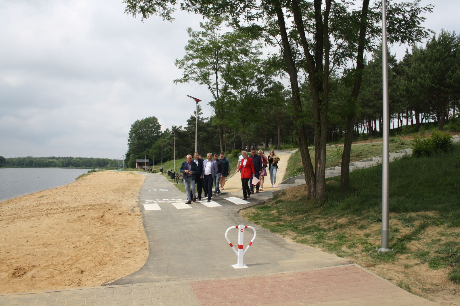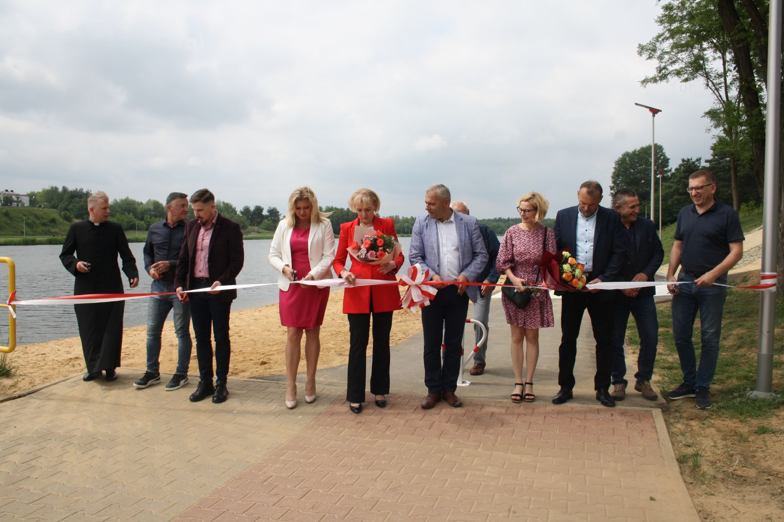 W dniu 3 czerwca br. nad zalewem w Jastrzębiu odbyło się oficjalne otwarcie oraz poświęcenie ścieżki pieszo-rowerowej wraz ze skateparkiem. W uroczystości wzięli udział: Poseł Anna Kwiecień, przedstawiciele Poseł Agnieszki Górskiej, przedstawiciel wykonawcy inwestycji, Burmistrz Jastrzębia Andrzej Bracha, Sekretarz Gminy Agnieszka Dąbrowska, Wiceprzewodniczący Rady Miejskiej Jerzy Kozłowski, Radny Powiatu Szydłowieckiego Wojciech Warso, Radni Rady Miejskiej w Jastrzębiu: Krzysztof Gołda oraz Kamil Walkiewicz, Kierownik referatu UM Mariusz Tomczyk, Sołtys Jastrzębia Sylwester Minda oraz mieszkańcy. Po przemówieniach zaproszonych gości odbyło się uroczyste przecięcie wstęgi oraz poświęcenie nowo wybudowanego obiektu, którego dokonał wikariusz parafii Jastrząb, ks. Przemysław Mąkosa. Nowo powstała inwestycja to nieodzowny element każdej przestrzeni miejskiej. W Jastrzębiu usytuowana jest ona wokół zbiornika wodnego, która liczy około 1,633 km wraz z infrastrukturą towarzyszącą m.in. ławkami, stojakami na rowery oraz oświetleniem. Dzięki tej inwestycji będzie można w pełni aktywnie i zdrowo spędzać czas. W ramach zadania wykonano również Skatepark z podestami i rampami. To miejsce rekreacji przeznaczone będzie dla miłośników jazdy na rolkach, deskorolkach, rowerach BMX, a także hulajnogach wyczynowych. Warto zauważyć, że jedną z najważniejszych umiejętności jakie zyskuje się dzięki treningom na skateparku to umiejętność utrzymania równowagi i koordynacji, a wszystko to przy odpowiedniej dawce adrenaliny. Te nowo wybudowane obiekty staną się dla mieszkańców gminy, jak również dla turystów nową znakomitą okazją do spędzania wolnego czasu poprzez spacery i przejażdżki rowerowe wokół urokliwego zalewu w otoczeniu pięknej przyrody, a co za tym idzie do relaksu i odpoczynku.