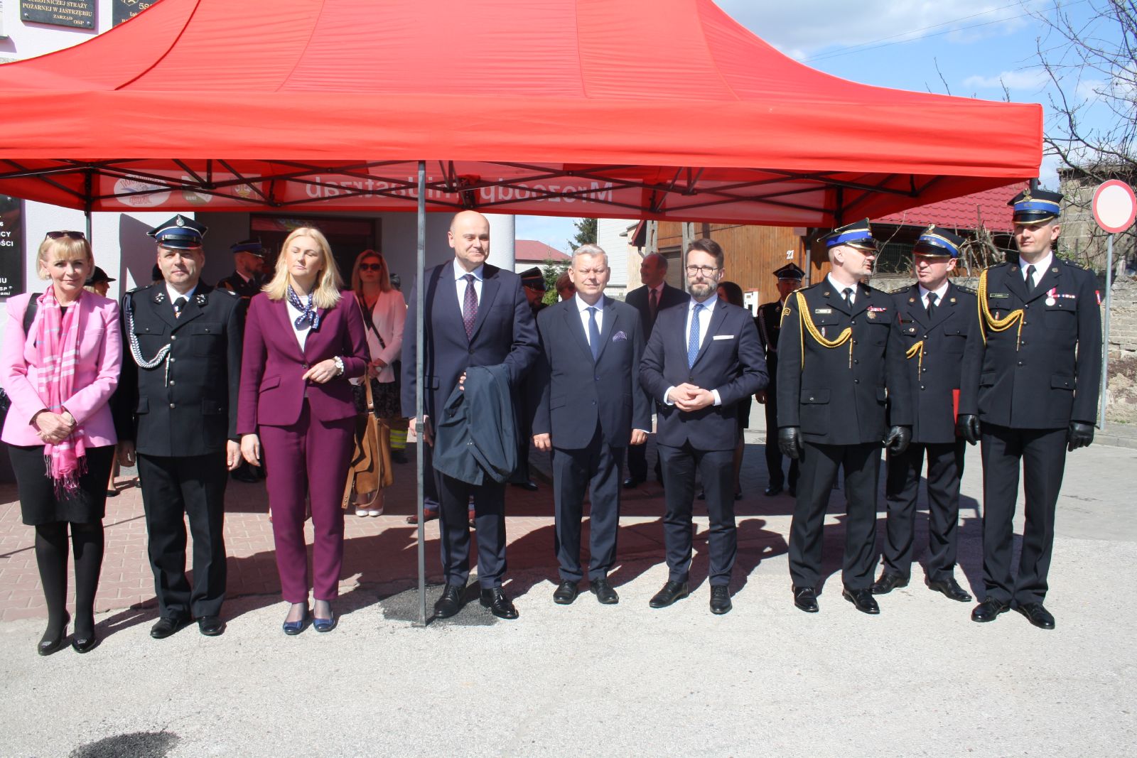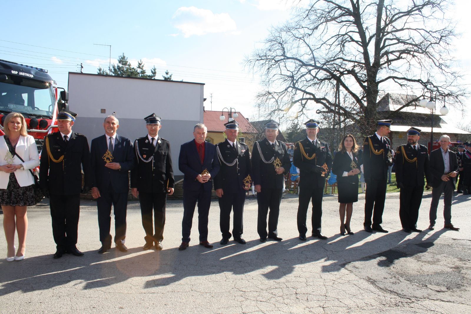 W uroczystości wzięli udział Posłowie na Sejm: Anna Kwiecień , Agnieszka Górska, Marek Suski, Andrzej Kosztowniak, Radosław Fogiel, Zastępca Komendanta Województwa Mazowieckiego Państwowej Straży Pożarnej w Warszawie st. bryg Tomasz Cybul, Wicestarosta Powiatu Szydłowieckiego Anita Gołosz, Komendant Powiatowy Państwowej Straży Pożarnej w Szydłowcu bryg. Paweł Sokół, Zastępca Komendanta Powiatowego Państwowej Straży Pożarnej st. bryg Paweł Górski, Prezes Zarządu Oddziału Powiatowego Ochotniczych Straży Pożarnych RP dh Aleksy Sasin, Wiceprezesi ZOP ZOSP RP w Szydłowcu dh Krzysztof Adamczyk oraz dh Mariusz Sokołowski, Dowódca JGR w Szydłowcu bryg. Arkadiusz Madej, Naczelnik Wydziału Operacyjnego w PSP w Szydłowcu kap. Robert Rycerski, Kierownik Biura Powiatowego Agencji Restrukturyzacji i Modernizacji Rolnictwa w Szydłowcu Edyta Wietrak, Prezes Zarządu LGD "Razem na Piaskowcu" Jan Gula, Burmistrz Jastrzębia Andrzej Bracha, Przewodniczący Rady Miejskiej Sławomir Bińkowski, Sekretarz Gminy Agnieszka Dąbrowska, Dyrektor Publicznej Szkoły Podstawowej w Jastrzębiu Beata Przytuła -Bińkowska, druhowie z gminy Jastrząb jak również społeczność lokalna. Wszyscy zaproszeni goście oraz mieszkańcy zgromadzeni przed strażnicą w Jastrzębiu udali się za korowodem strażackim i orkiestrą dętą ze Starej Błotnicy na ceremonialną Mszę Świętą, której przewodniczył ksiądz proboszcz Zbigniew Tuchowski oraz ksiądz Krzysztof Świątek. Po nabożeństwie wszyscy udali się ponownie pod strażnicę, gdzie rozpoczęła się oficjalna część uroczystości.