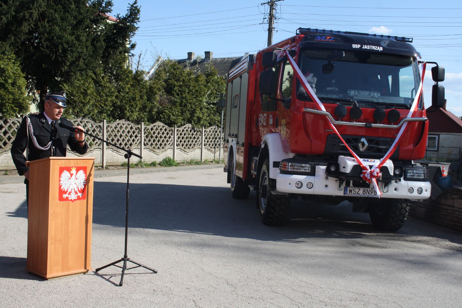 Wydarzenie rozpoczęło się wprowadzeniem sztandaru oraz odśpiewaniem Mazurka Dąbrowskiego. Gości przywitała Komendant Gminny OSP Jastrząb Anna Kupidura, następnie kronikarz OSP Jastrząb Paweł Kosno przedstawił krótką historię jednostki. Pojazd został poświęcony przez proboszcza Zbigniewa Tuchowskiego i wikarego Przemysława Mąkosę. Kulminacyjnym punktem uroczystości było oficjalne wręczenie kluczyków przez Posła Marka Suskiego na ręce druha Macieja Ziółko. Po wręczeniu upominków głos zabrali zaproszeni goście podkreślając rangę wydarzenia i życząc strażakom bezpiecznych powrotów do domów a także jak najmniej wyjazdów. Odczytany został również list gratulacyjny od Marszałka Województwa Mazowieckiego Adama Struzika. Zasłużonym druhom wręczone zostały medale za zasługi dla pożarnictwa. Na pamiątkę tej uroczystości Komendant Anna Kupidura wręczyła gościom statuetki strażackie. Po zakończeniu uroczystości zaproszeni goście udali się na poczęstunek do Świetlicy Środowiskowej natomiast dla mieszkańców była dostępna pyszna grochówka przyrządzona przez OSP Nowy Dwór. Nowo zakupiony samochód wraz z wyposażeniem usprawni pracę strażaków, pozwoli na sprawniejsze podejmowanie akcji przez druhów jednostki oraz zwiększy gwarancję bezpieczeństwa gminy Jastrząb. Całkowity koszt zakupu samochodu wyniósł 820 410, 00 zł. Środki na zakup pojazdu pochodziły m.in. z Komendy Głównej PSP w Warszawie w kwocie 475 000,00 zł, z Samorządu Województwa Mazowieckiego 100 000, 00 zł, z Gminy Jastrząb 237 820, 00 zł oraz ze środków własnych OSP Jastrząb w kwocie 7 590,00 zł .