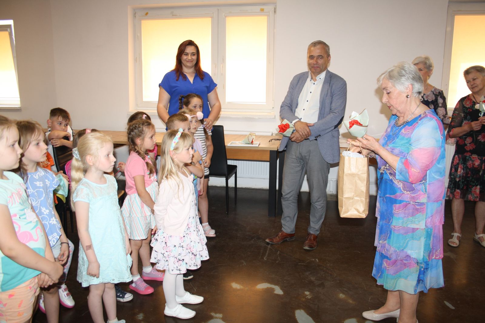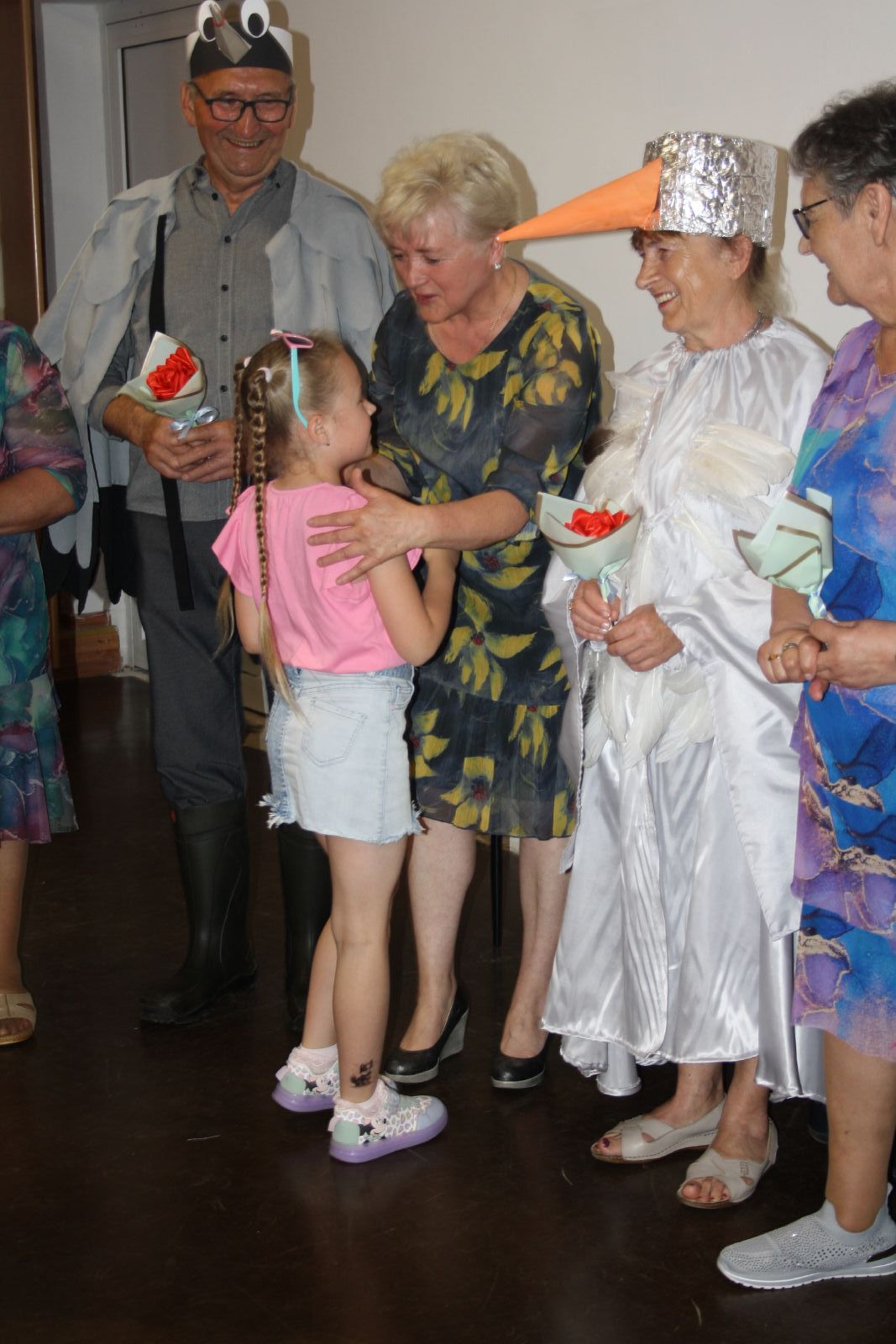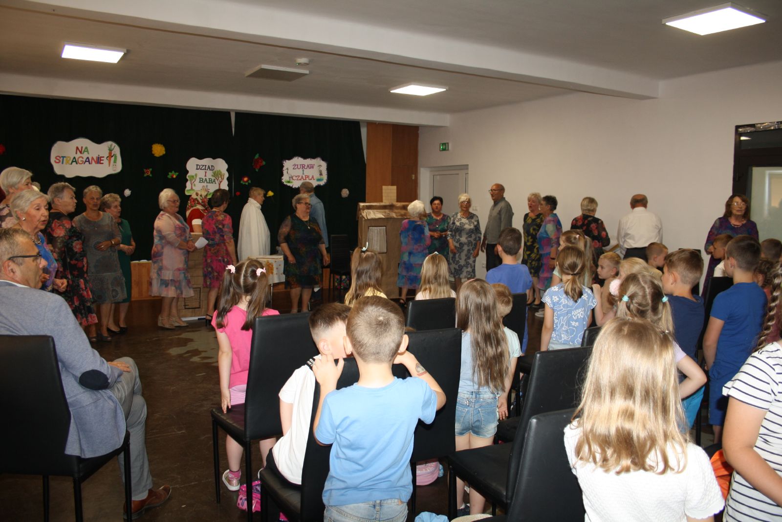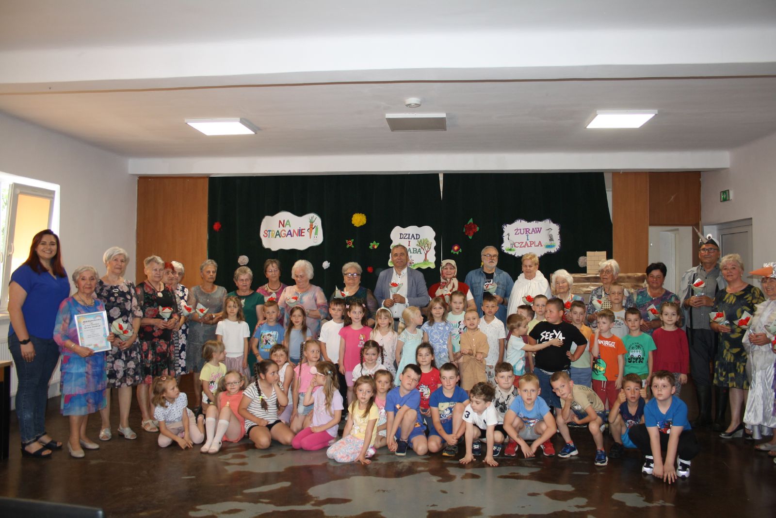 Dnia 22 maja br. w Świetlicy Środowiskowej w Jastrzębiu odbyło się niezwykłe przedstawienie dla najmłodszych, które przygotowała grupa teatralna "Młodzi Duchem" ze Stowarzyszenia Pogodni Seniorzy z gminy Jastrząb. Podczas występu na widowni gościły maluchy z oddziału przedszkolnego z PSP w Jastrzębiu jak również Burmistrz Jastrzębia Andrzej Bracha. W związku z nadchodzącym dniem dziecka seniorzy zainscenizowali trzy bardzo znane wiersze tj. "Na straganie", "Żuraw i Czapla" autora Jana Brzechwy oraz "Dziad i Baba" Ignacego Kraszewskiego. Przedstawienie zakończyło się gromkimi brawami, a dzieci były zachwycone i rozbawione, uśmiech nie schodził im z twarzy. Dzieciaki za tak wspaniały występ przekazały każdemu z osobna urocze małe bukieciki oraz dyplom z podziękowaniem. Natomiast seniorzy obdarowali je słodkościami.