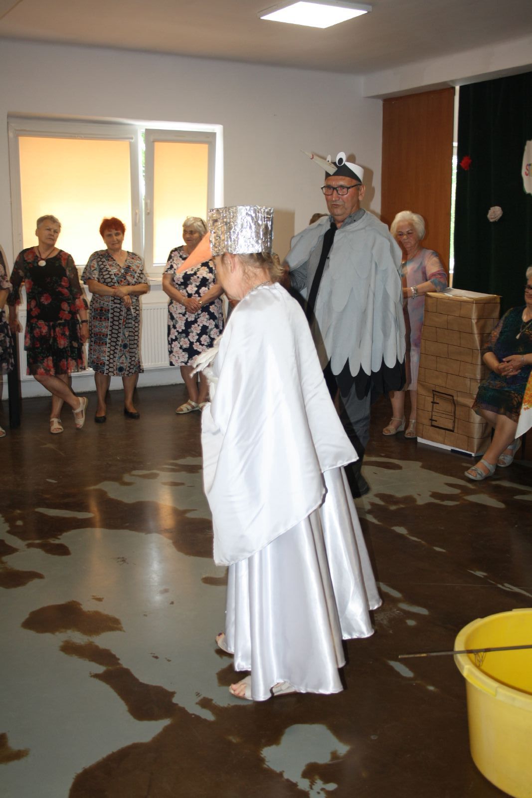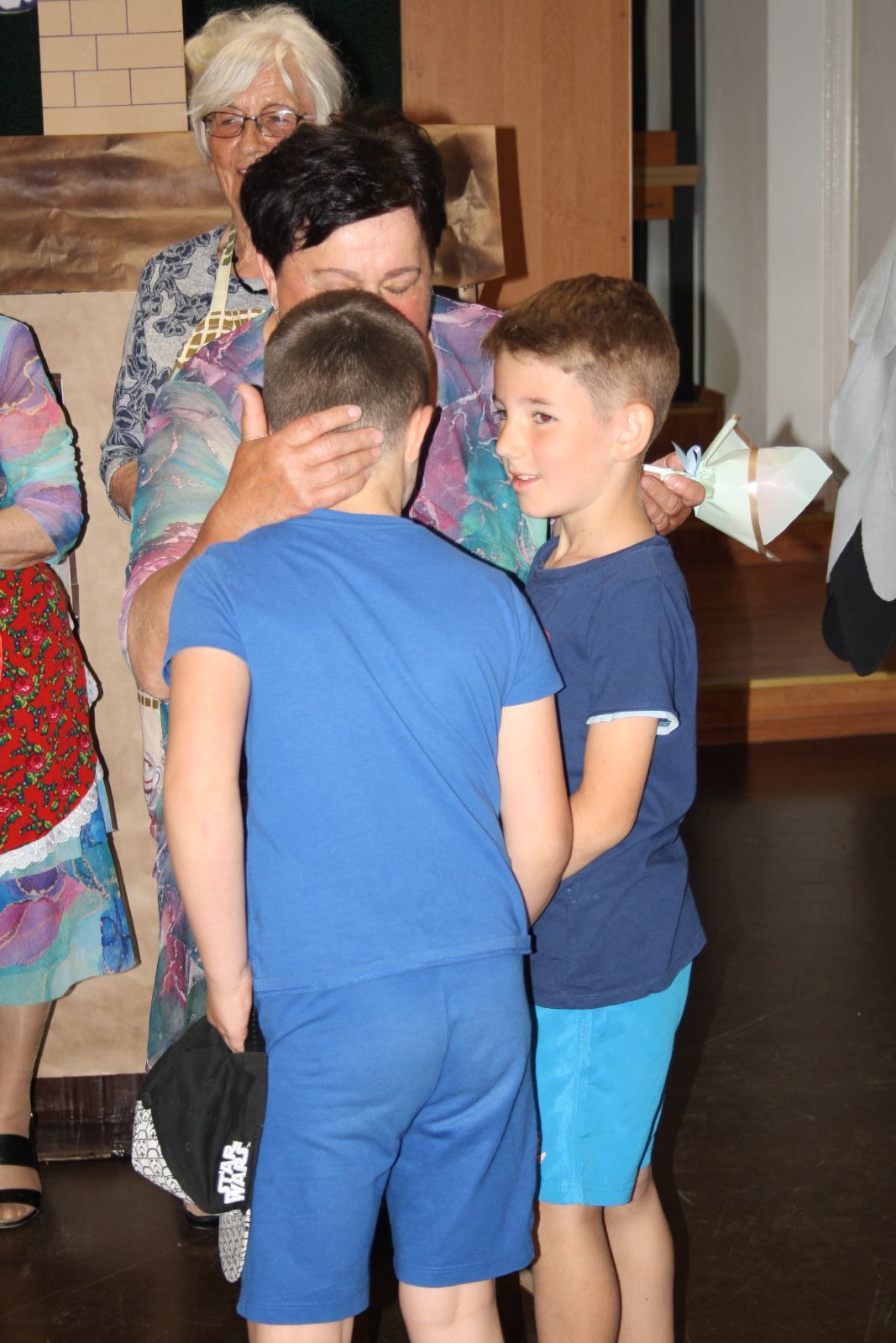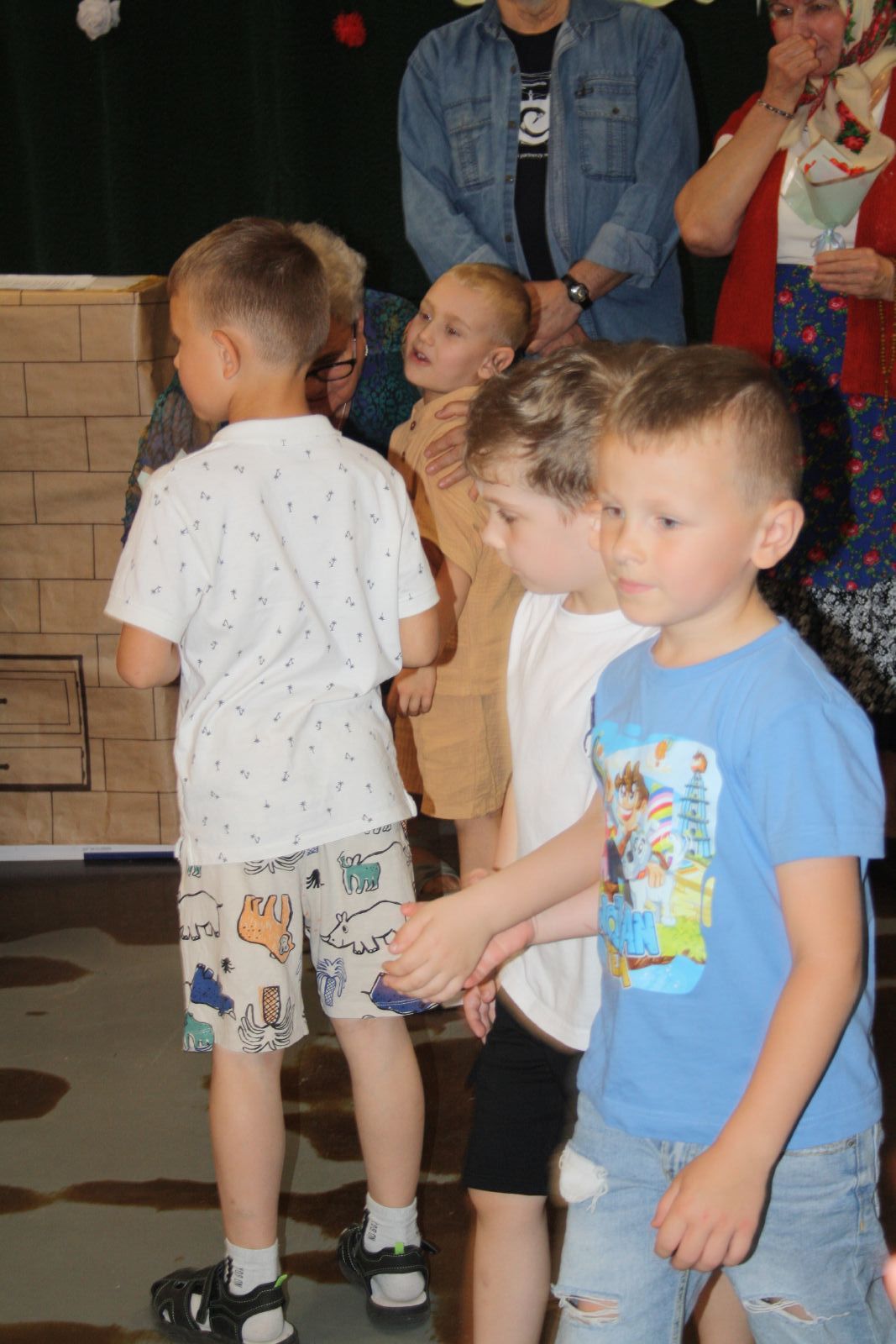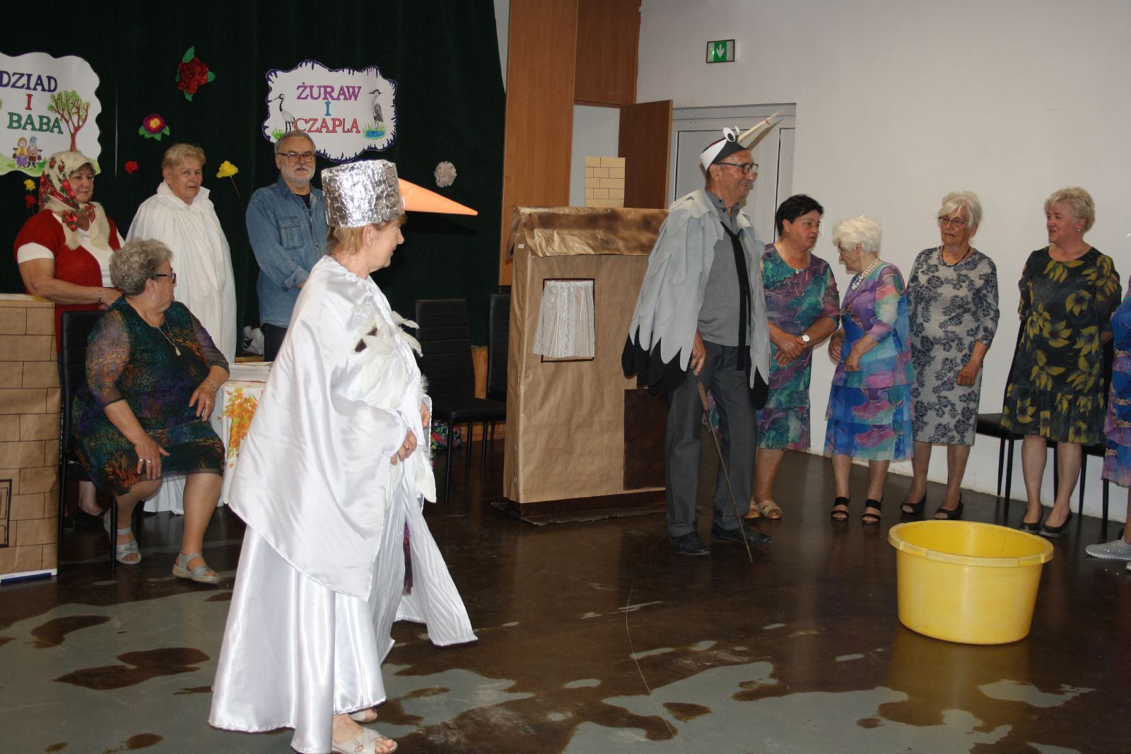 Dnia 22 maja br. w Świetlicy Środowiskowej w Jastrzębiu odbyło się niezwykłe przedstawienie dla najmłodszych, które przygotowała grupa teatralna "Młodzi Duchem" ze Stowarzyszenia Pogodni Seniorzy z gminy Jastrząb. Podczas występu na widowni gościły maluchy z oddziału przedszkolnego z PSP w Jastrzębiu jak również Burmistrz Jastrzębia Andrzej Bracha. W związku z nadchodzącym dniem dziecka seniorzy zainscenizowali trzy bardzo znane wiersze tj. "Na straganie", "Żuraw i Czapla" autora Jana Brzechwy oraz "Dziad i Baba" Ignacego Kraszewskiego. Przedstawienie zakończyło się gromkimi brawami, a dzieci były zachwycone i rozbawione, uśmiech nie schodził im z twarzy. Dzieciaki za tak wspaniały występ przekazały każdemu z osobna urocze małe bukieciki oraz dyplom z podziękowaniem. Natomiast seniorzy obdarowali je słodkościami.