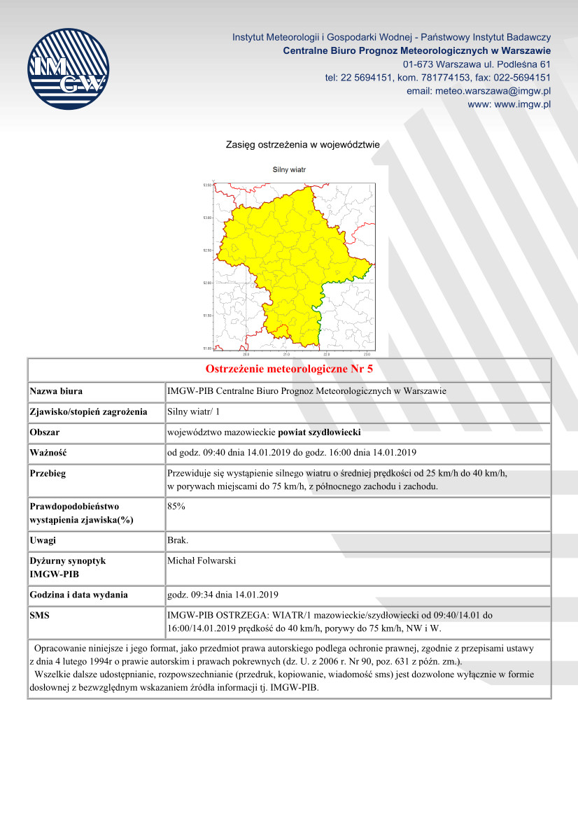 | Ważność | od godz. 09:40 dnia 14.01.2019 do godz. 16:00 dnia 14.01.2019 |