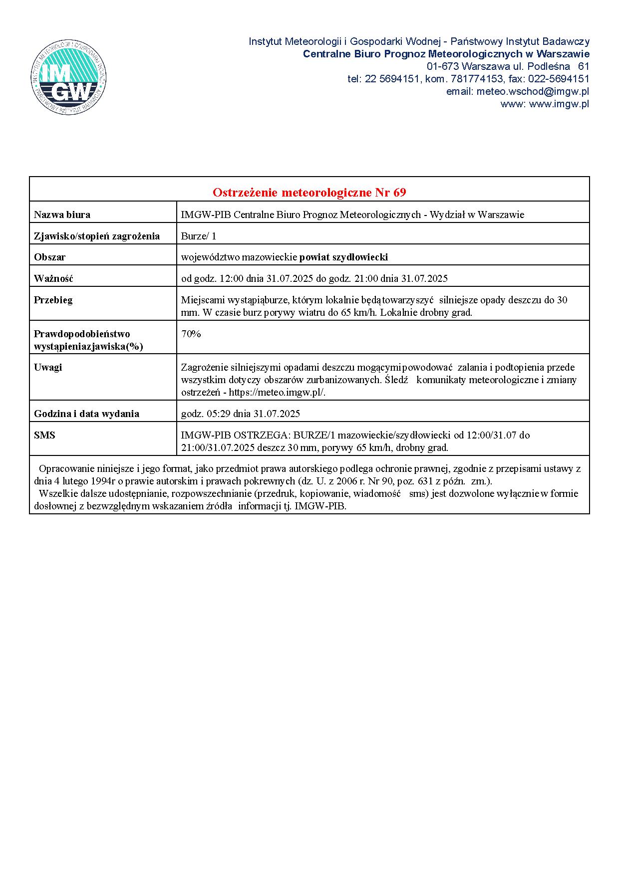 | Ważność | od godz. 12:00 dnia 31.07.2025 do godz. 21:00 dnia 31.07.2025 |